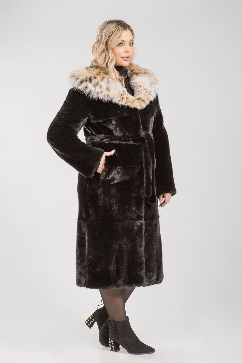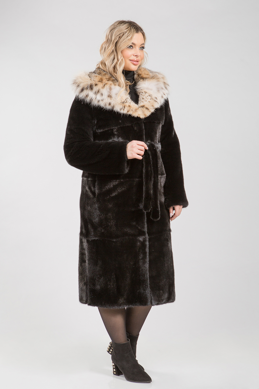 Полупальто из норки с капюшоном, украшенным мехом рыси. Модель имеет крой пластины с добавлением роспуска, что придает изделию особый шарм. Рукава оснащены регулируемыми утяжками для удобства. Длина полупальто составляет 120 сантиметров. Меховой пояс позволяет адаптировать модель по фигуре. Шубка изготовлена из высококачественной норки и идеально подходит для создания презентабельного классического образа. Особенностью изделия являются разрезы по бокам, которые придают ему элегантность и утонченность. Если вы хотите выглядеть престижно и роскошно, натуральная норковая шуба с великолепным мехом рыси станет идеальным выбором!