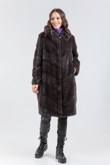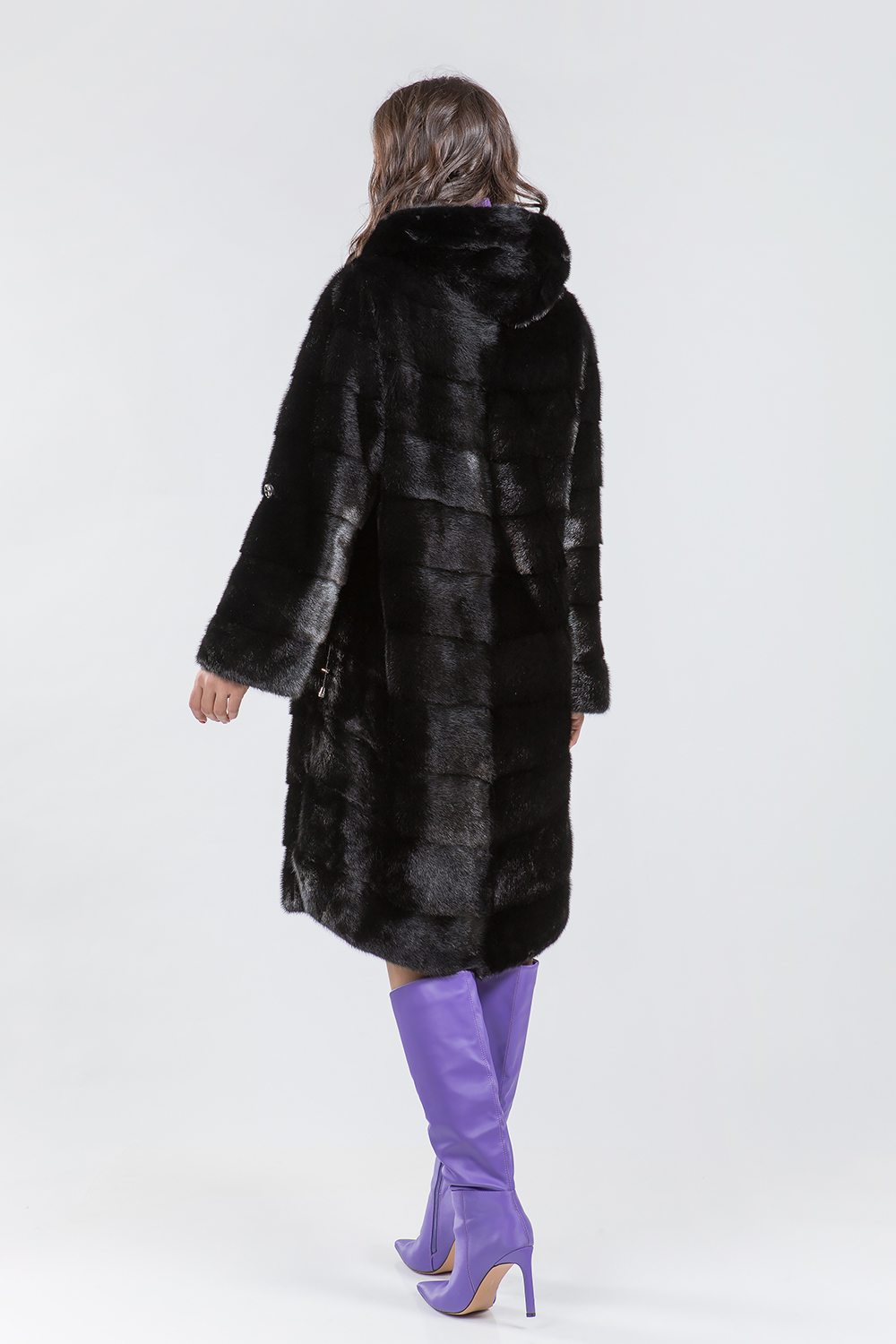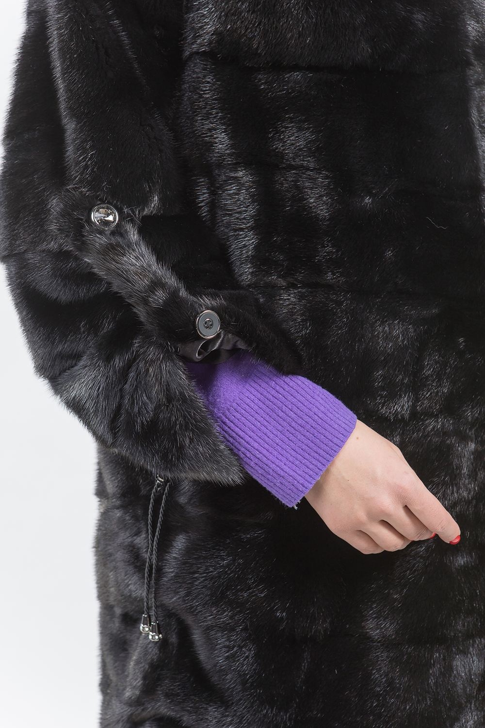 Полупальто из меха норки с капюшоном. Крой изделия-слегка диагональная выкладка пластин. Рукава и низ модели имеют регулирующие утяжки, благодаря которым шубка трансформируется в универсальную модель. При желании Вы можете распустить утяжки и получить классическую шубку! Длина изделия 110см. Такая оригинальная и эксклюзивная модель пользуется популярностью у наших прекрасных покупательниц!