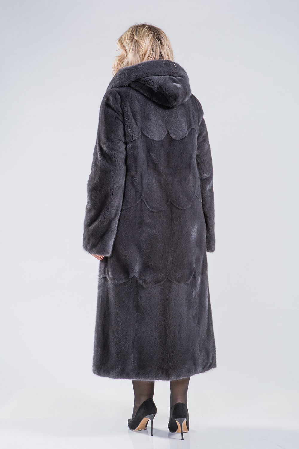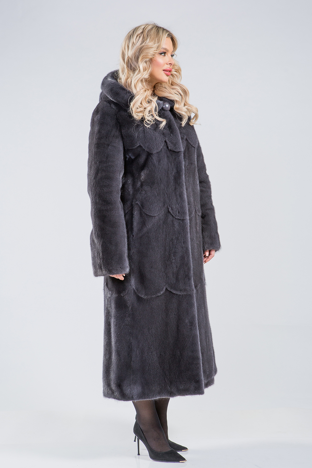 Полупальто из меха норки с капюшоном. Крой изделия пластины с добавлением роспуска. Модель оснащена регулирующими утяжками на рукавах и в зоне талии. Длина изделия 125 см. Классическая шубка в гардеробе всегда актуальна. Этого стиля в одежде придерживаются дамы разного возраста, старающиеся выглядеть женственно и элегантно в любое время года. Такое норковое пальто-это отличный вариант для суровой сибирской зимы!