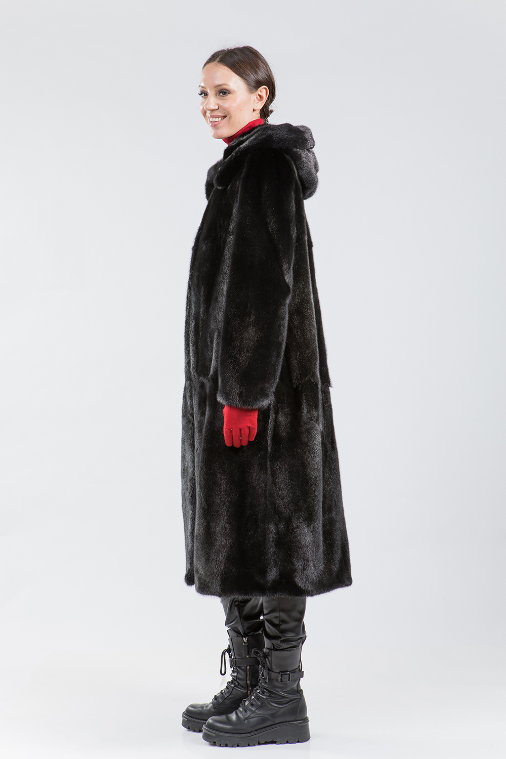Полупальто из норки с капюшоном — превосходный вариант на все случаи жизни! Эта модель, созданная по принципу сочетания пластин и роспуска, отличается классическим силуэтом и регулируемыми утяжками на рукавах и талии. Длина шубы составляет 120 см, что делает её поистине универсальной.