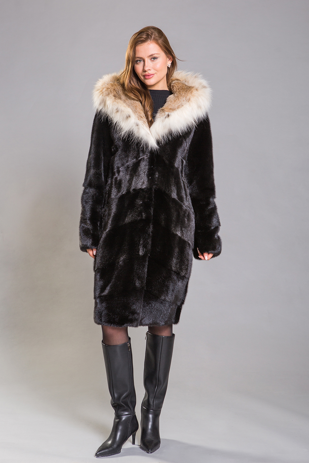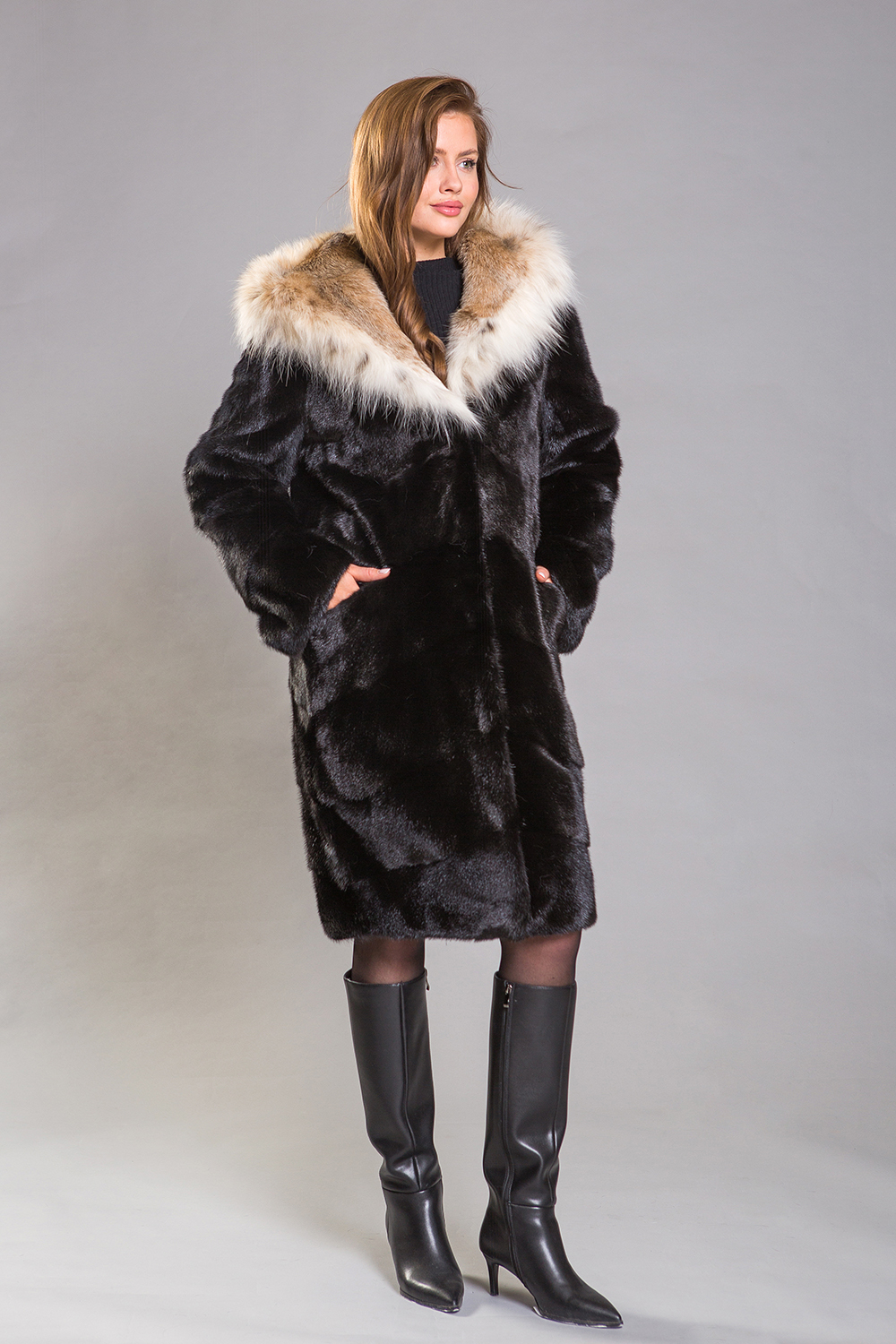 Полупальто из меха норки, украшенное капюшоном из рыси, – это роскошный образец, выполненный в технике диагональной выкладки пластин, что придаёт ему особую элегантность. Для удобства предусмотрены регулирующие утяжки на талии, рукавах и по низу изделия, что позволяет создать идеальный силуэт. Длина полупальто составляет 100 см, а его рукава могут трансформироваться в более укороченные, что делает модель особенно практичной. Карманы фиксируются магнитами, что обеспечивает их надежную фиксацию. Этот меховой шедевр создан для максимального комфорта, а капюшон из великолепного меха рыси придаёт образу изысканность и величие. Модель идеально подходит как для солидных женщин, так и для более молодого поколения, подчеркивая статус успешной личности!