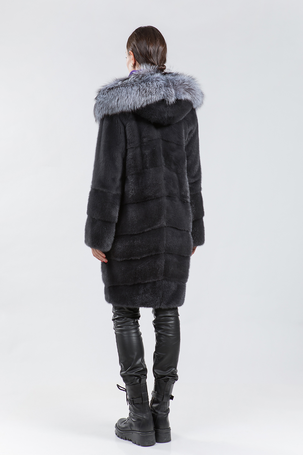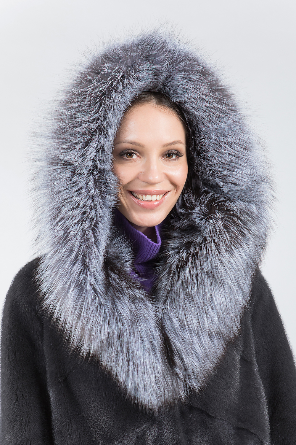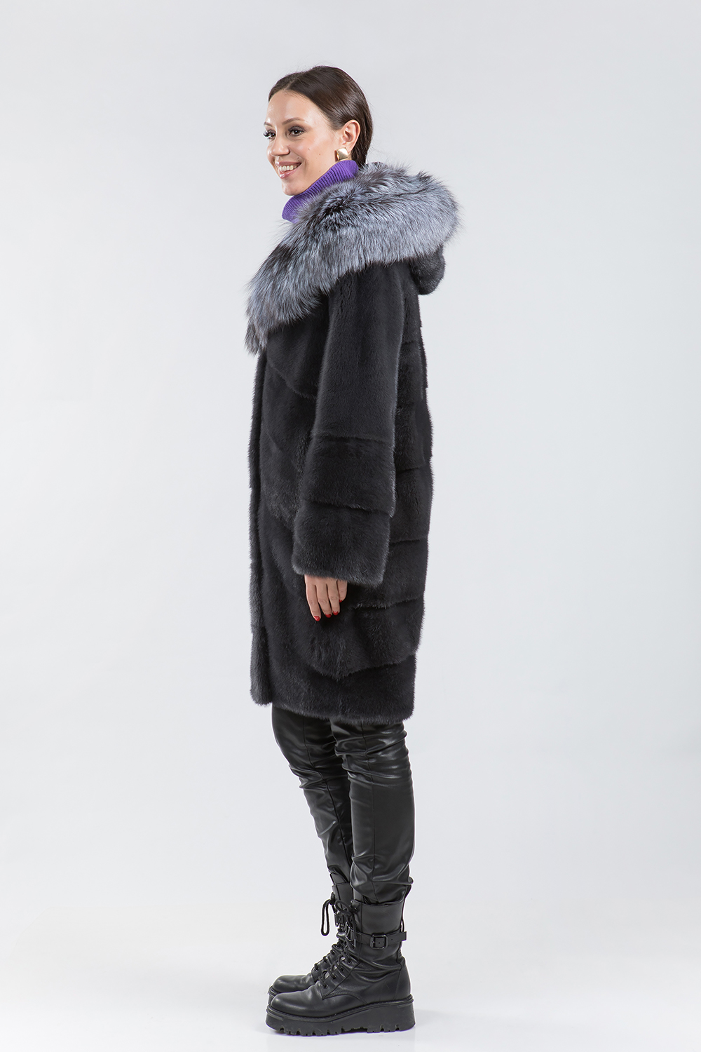 Полупальто, выполненное из меха норки, станет вашим любимым аксессуаром! Его капюшон украшен роскошным мехом лисы, что придаёт модели особый шарм. Крой изделия выполнен в виде диагональной выкладки пластин, что делает его невероятно уютным и элегантным.