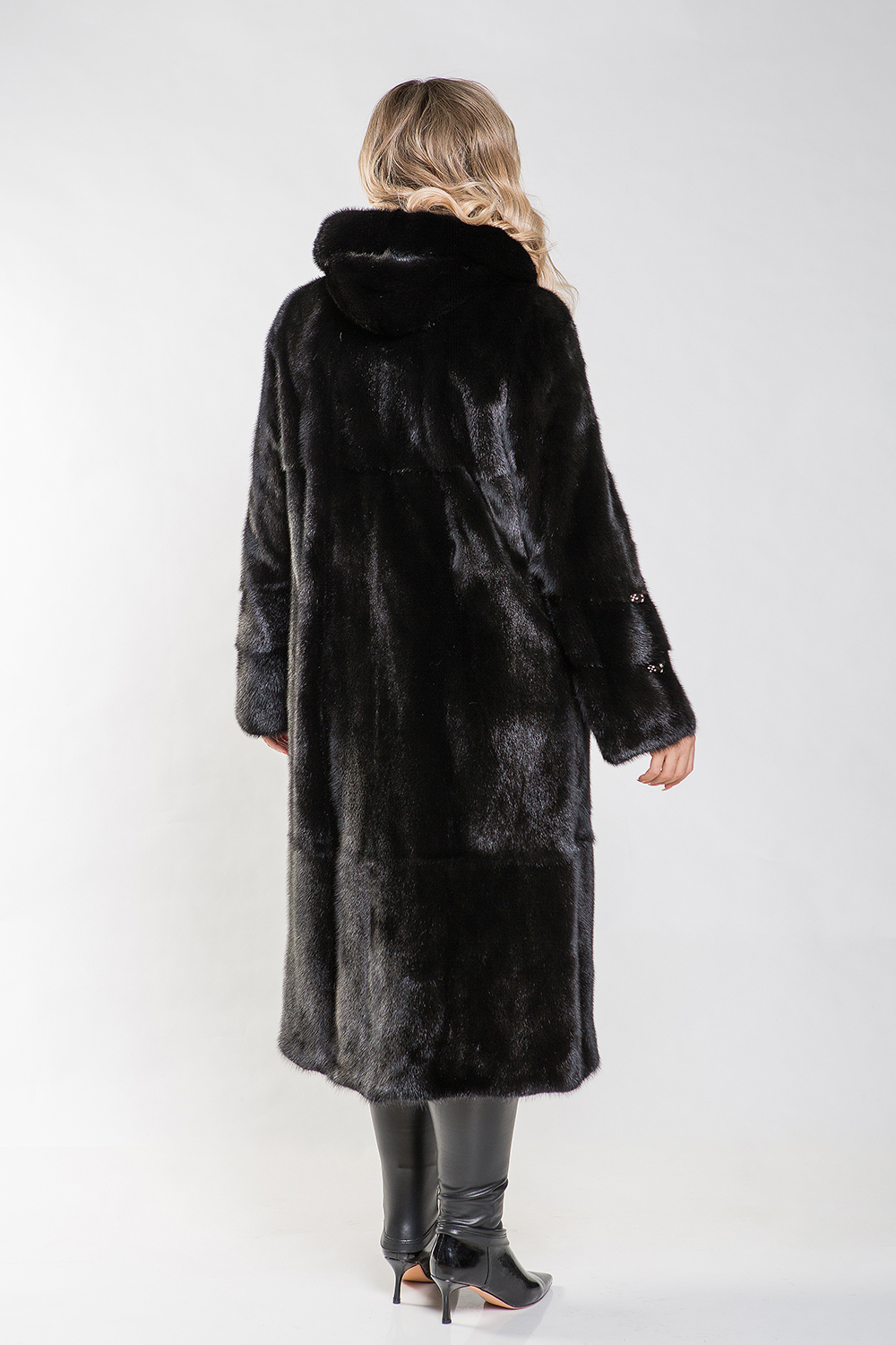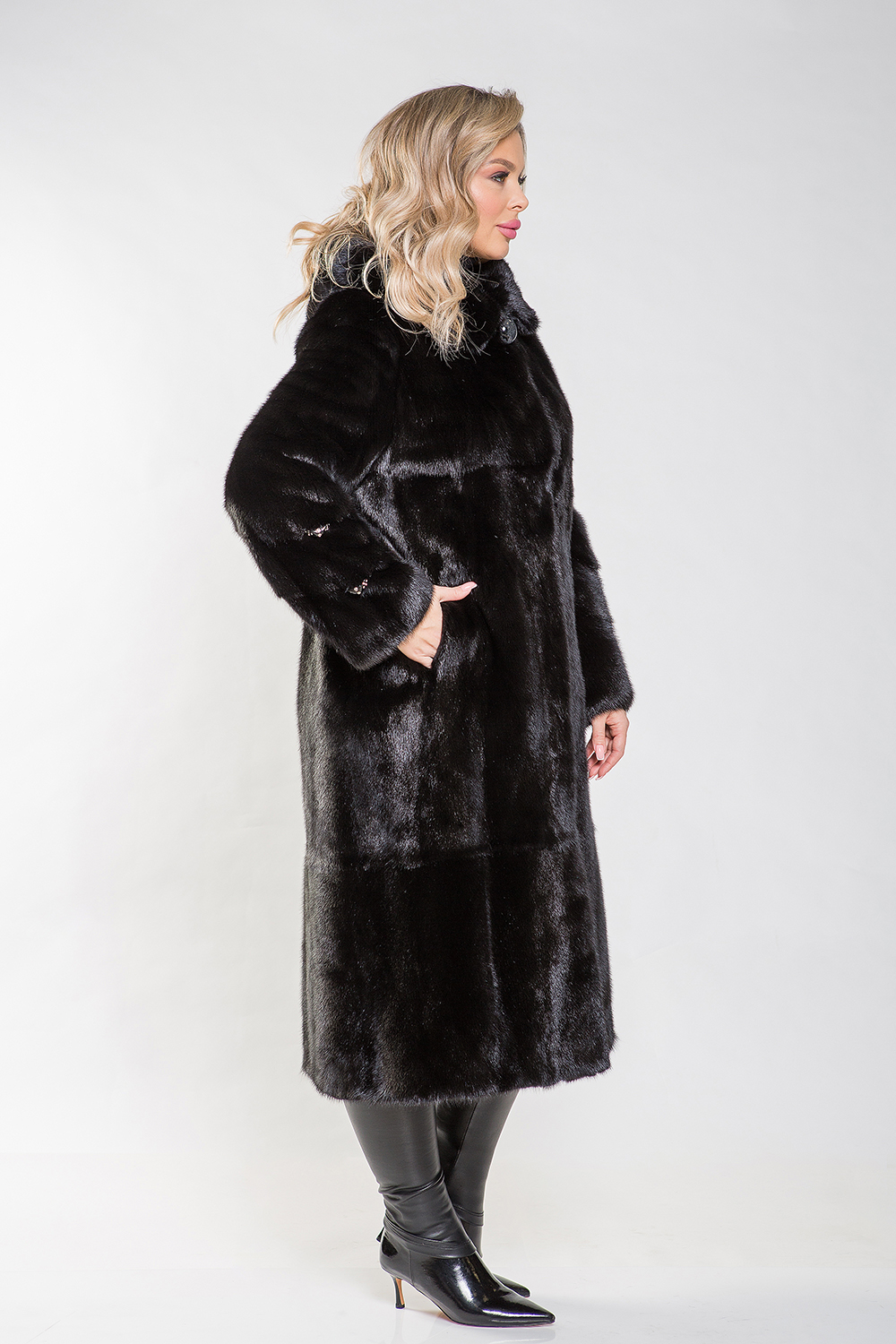 Полупальто из норки с капюшоном — это удивительное сочетание классики и элегантности. Крой модели выполнен из пластин с добавлением роспуска, что придаёт ей неповторимый шарм.