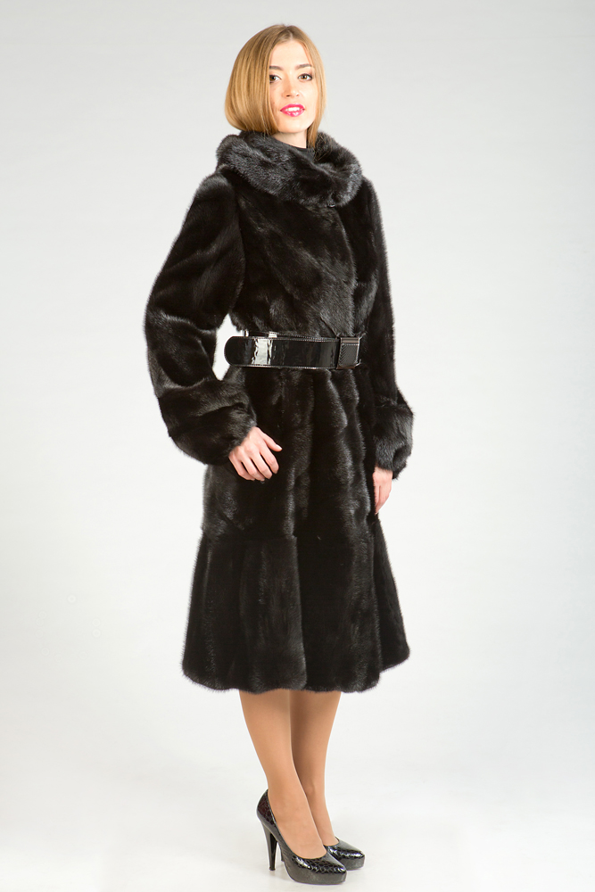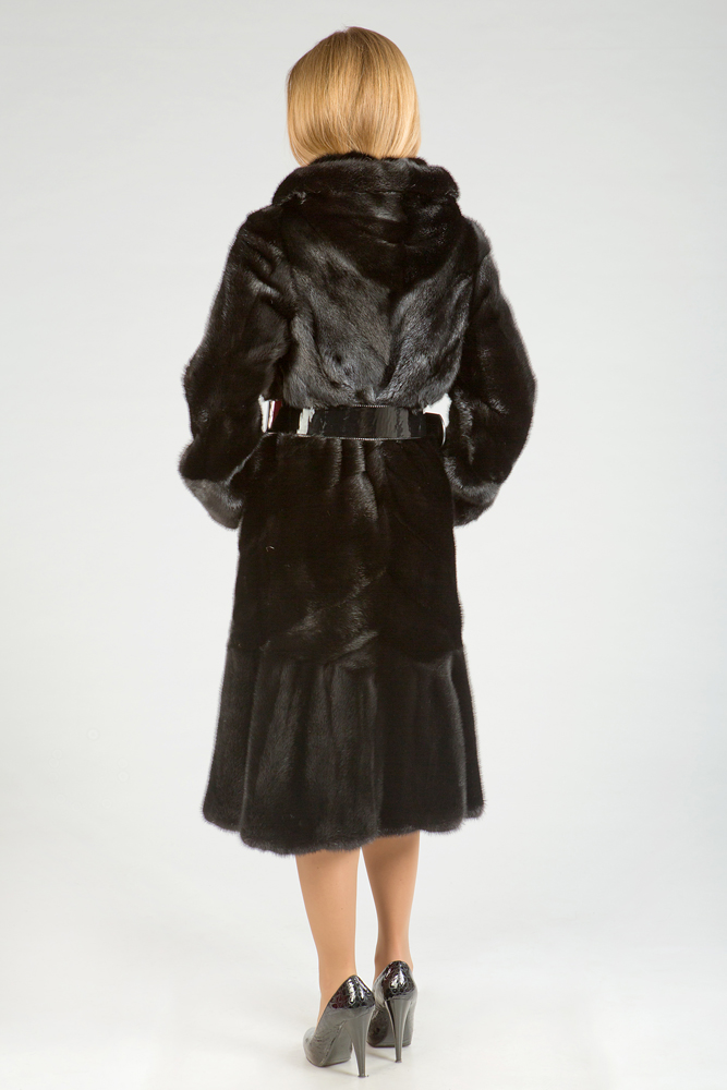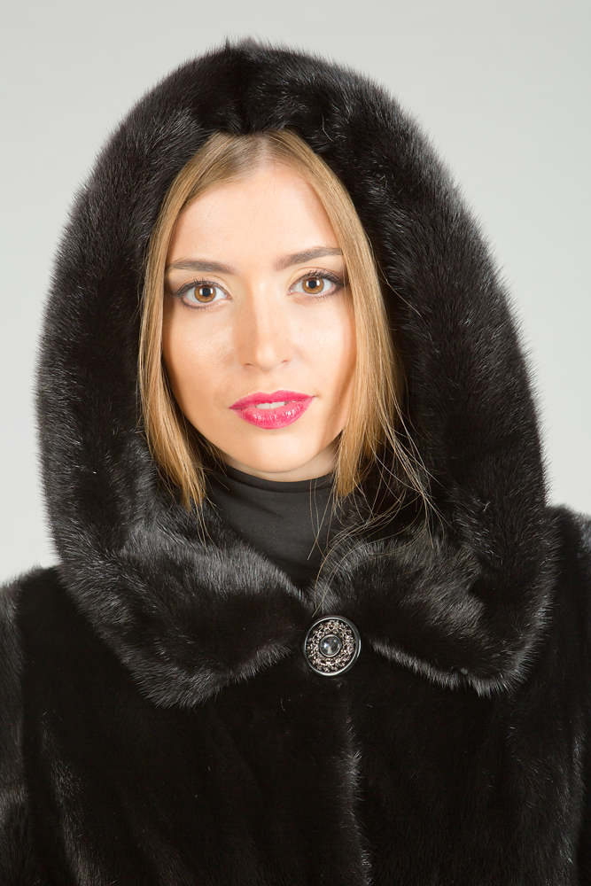 Полупальто из меха норки с капюшоном. Крой изделия комбинированная выкладка пластин. Сборка полотна ворсом вверх. Длина изделия 110 см. Удобный крой шубки обеспечит максимальный комфорт, благородный тон гарантирует образу безупречную гармонию!