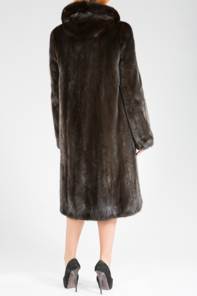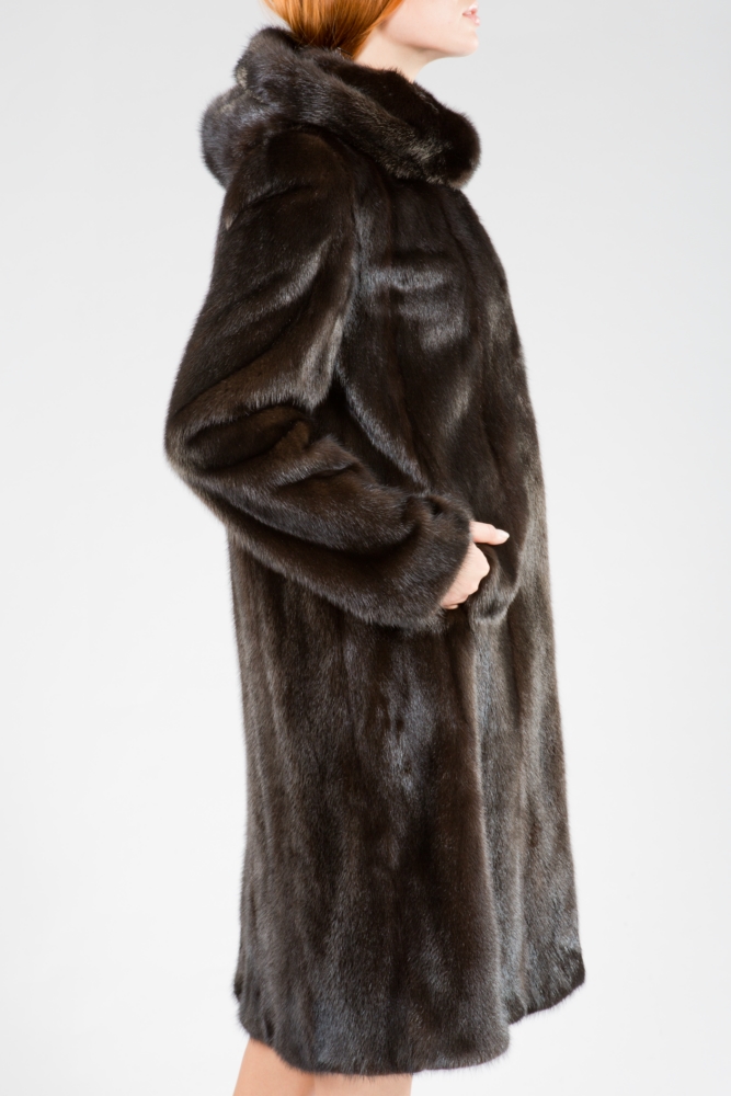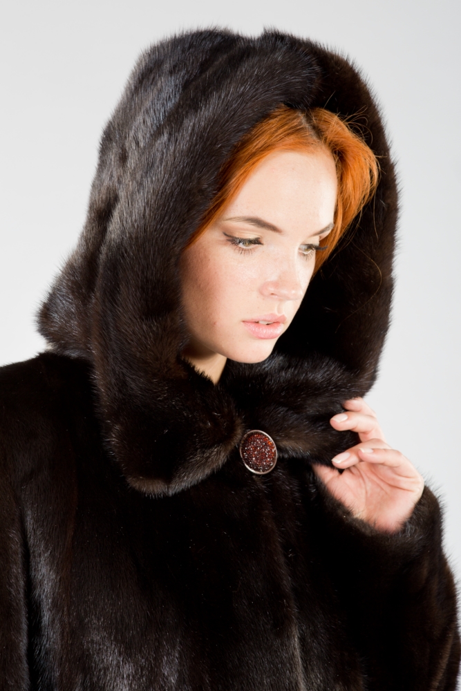Полупальто из меха норки с капюшоном. Крой изделия роспуск с добавлением пластин. Модель оснащена регулирующими утяжками на рукавах и на талии. Длина изделия 110 см. Меховое пальто имеет шлейф, что придает образу изящество и величие! Этот оригинальный фасон гарантирует владелице повышенное внимание окружающих!