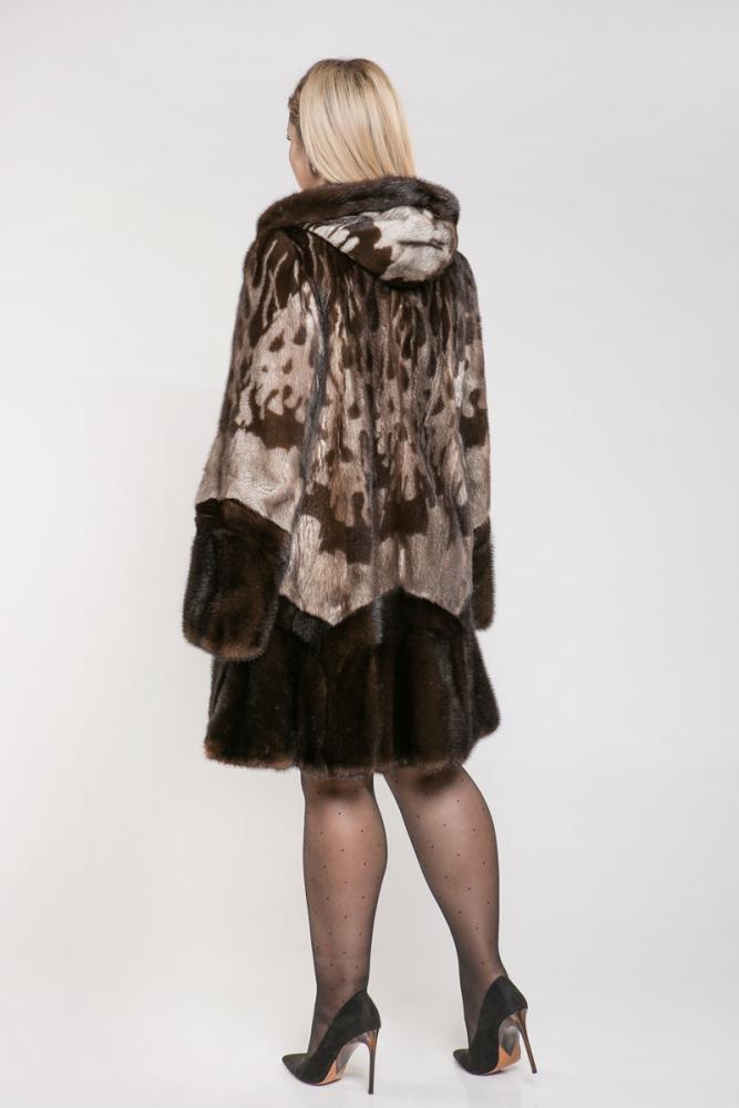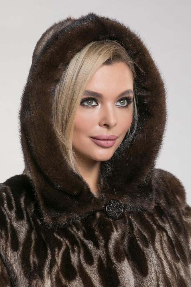 Полупальто из меха норки с капюшоном. Крой изделия в роспуск с добавлением пластин. Внутри на талии и на рукавах модели есть регулирующие утяжки. Низ изделия декорирован воланом. Шубка легкая, оригинальная и морозостойкая!