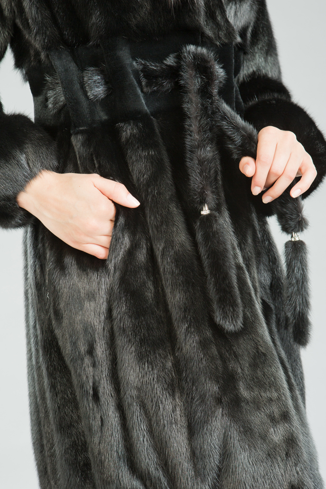Полупальто из меха норки. Капюшон модели декорирован мехом чернобурой лисы. Крой изделия роспуск с добавлением пластин, а длина 100 см. К низу модель слегка присборена. Такая миниатюрная шубка выглядит эффектно, благодаря шикарному капюшону из лисы, который добавляет нотки шика и гламура!