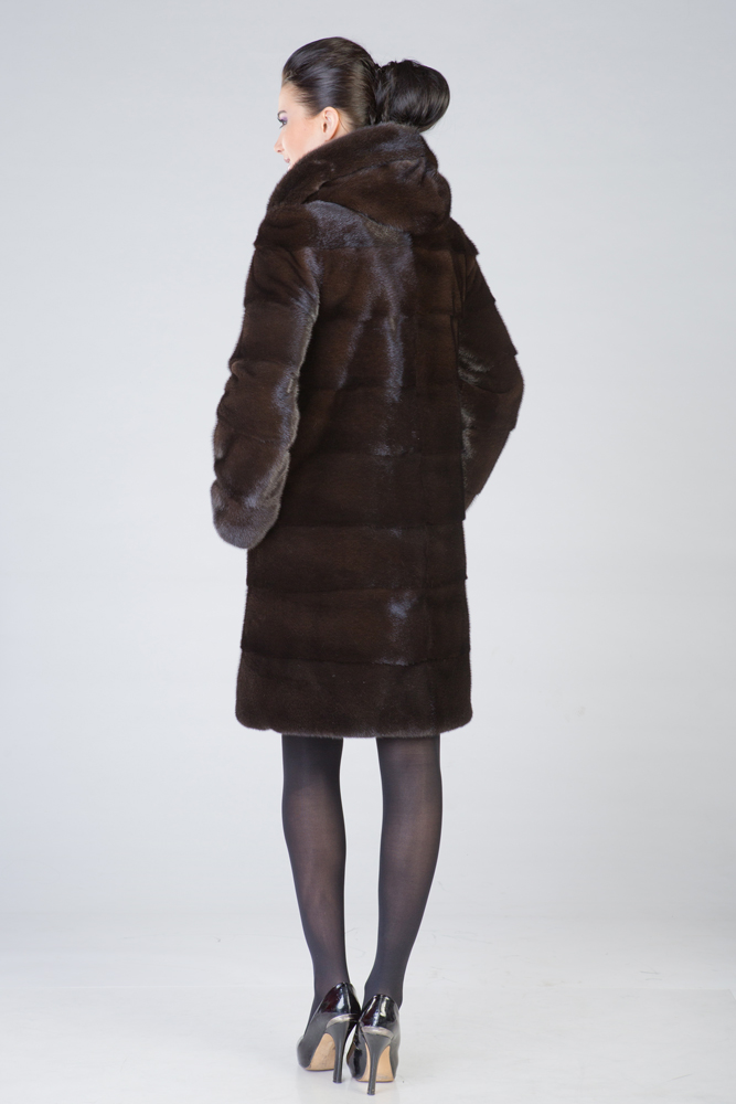 Полупальто из меха норки с капюшоном. Крой изделия - поперечная выкладка пластин. Длина шубки 90 см. Рукава и низ модели отстегиваются и шубка трансформируется в миниатюрную изящную курточку. Не каждая леди может включить в свой гардероб несколько шуб из норки. Покупка модели трансформера устраняет проблемы, позволяет менять образ, используя для этого одну модель! Будьте обворожительны в новой шубке!