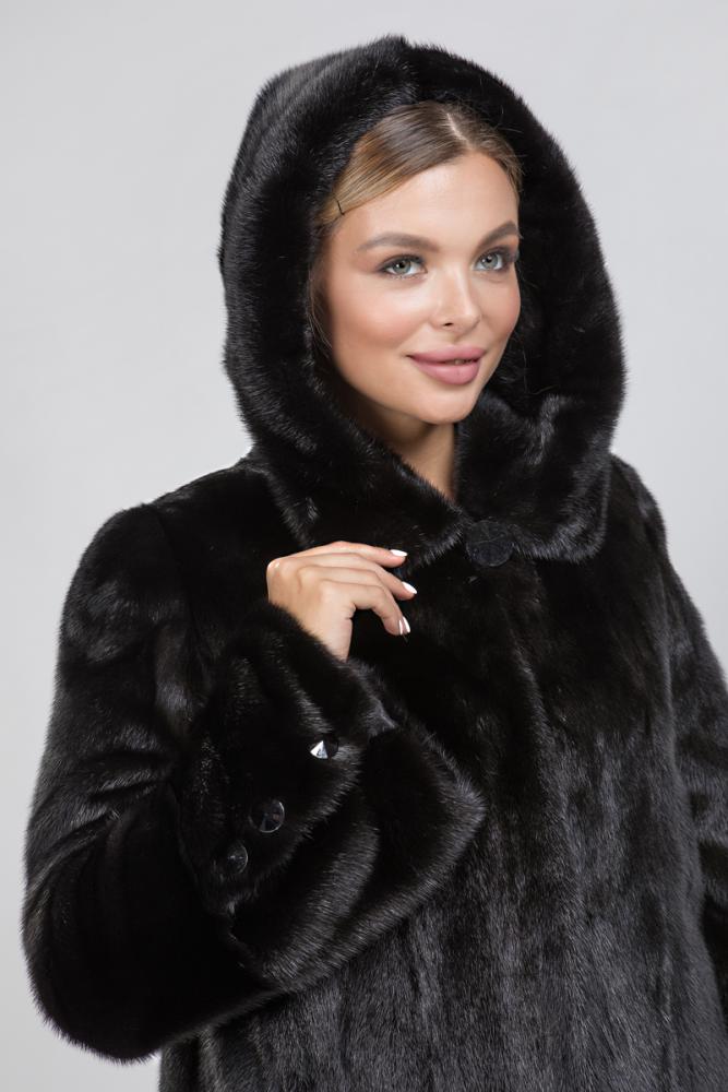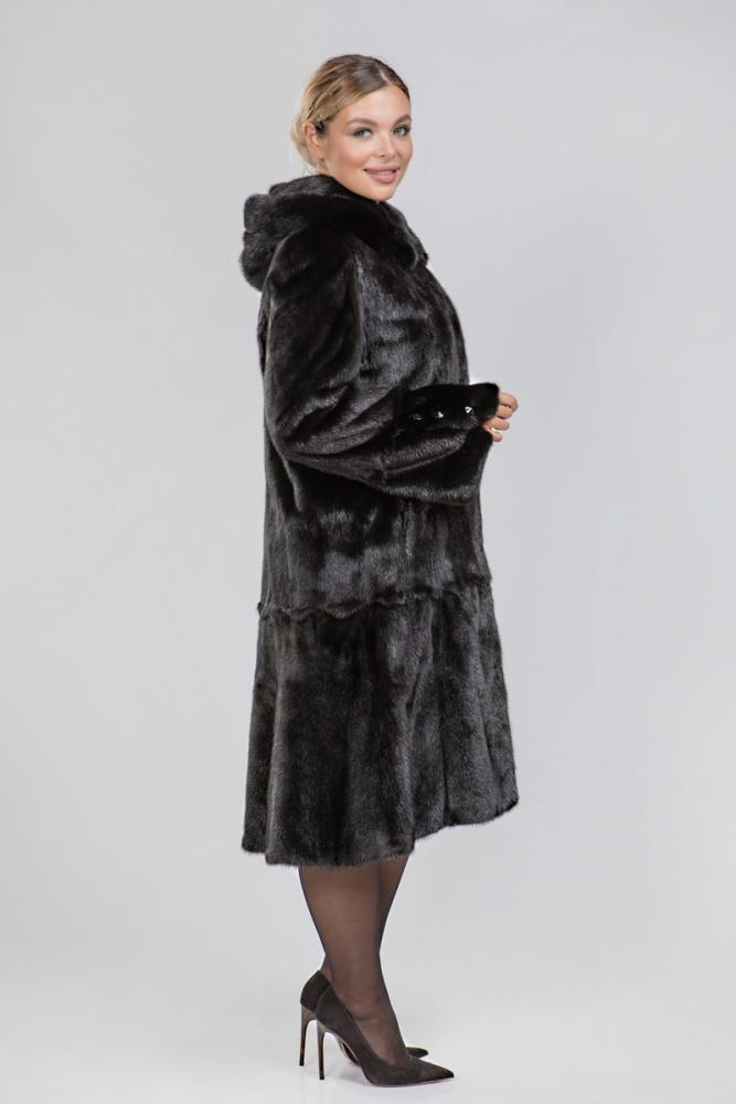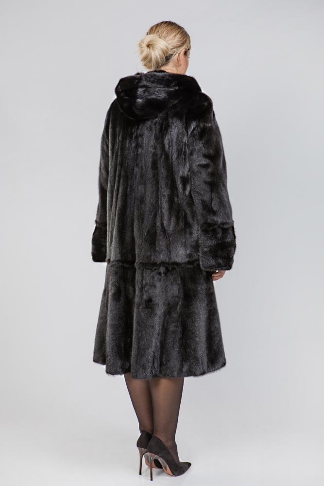 Полупальто из меха норки с капюшоном. Крой изделия пластины с добавлением роспуска. Модель оснащена регулирующей утяжкой в зоне талии. Длина изделия 110 см. Низ шубки слегка расклешен. Приталенный силуэт зрительно подчеркивает женскую стройную фигуру!