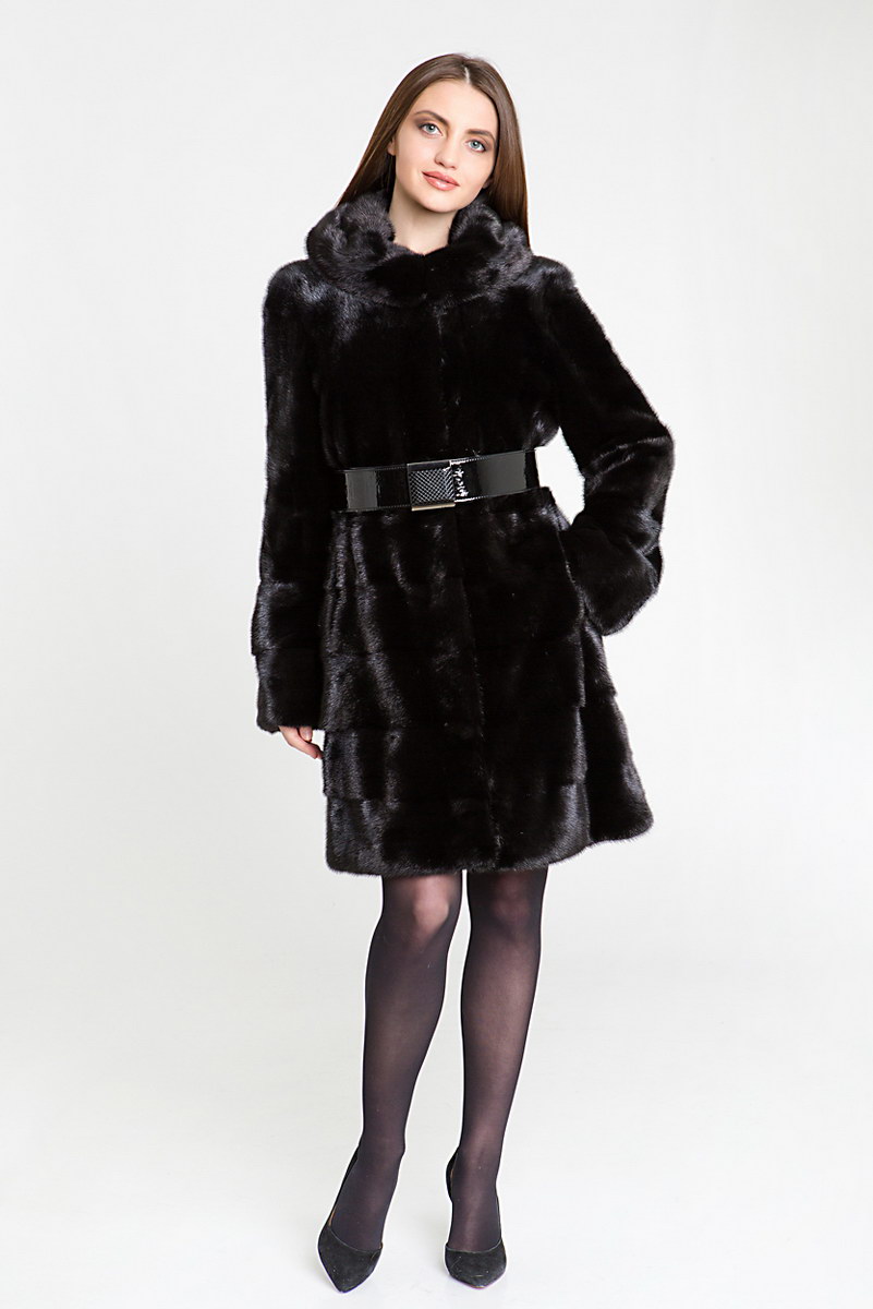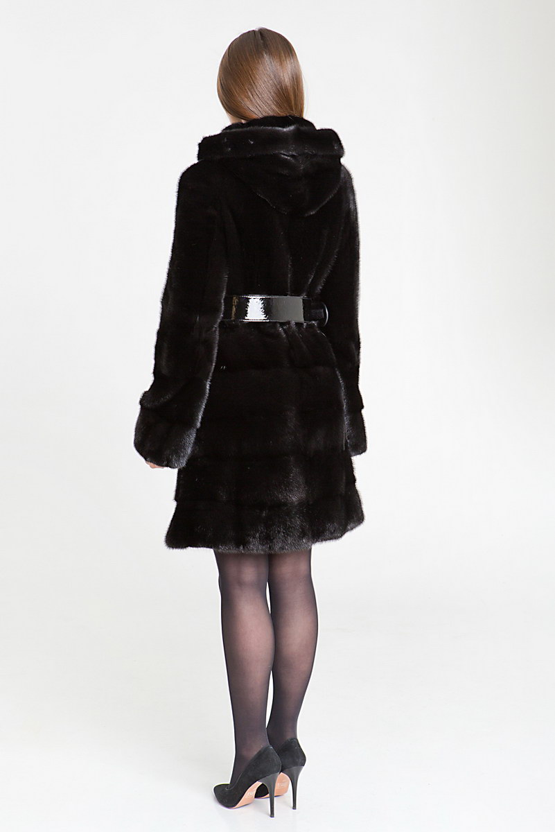 Полупальто из меха норки с капюшоном. Крой изделия - комбинированный. Верх модели собран в роспуск, а юбка изделия- поперечная выкладка пластин. Приталенный фасон, лаконичный дизайн, длина миди гармонично сочетаются между собой и создают красивый силуэт. Покупка такой шубки - это своего рода инвестиция!