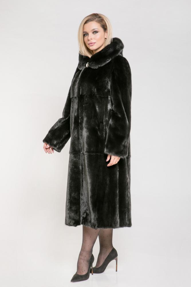 Полупальто из меха норки с капюшоном. Крой изделия пластины с добавлением роспуска. Внутри на талии и на рукавах модели регулирующие утяжки. Длинная шубка прекрасно сочетается с юбками и платьями, однако следует учесть, что длина подола не должна превышать длину шубы. Такая шубка в прекрасном качественном мехе своего рода-инвестиция!