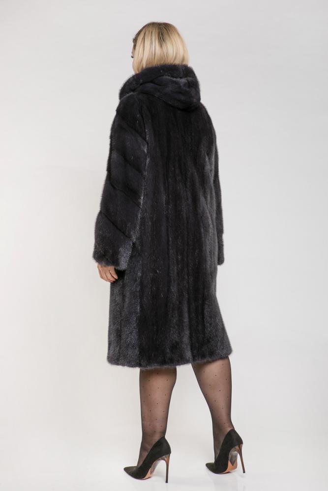 Полупальто из меха норки с капюшоном. Крой изделия в роспуск, рукава модели сшиты диагональной выкладкой пластин. Внутри на талии и на рукавах изделия есть регулирующие утяжки. Лаконичный, классический силуэт этой шубки подойдет дамам любой комплекции. Глубокий и насыщенный оттенок муссона придает модели оригинальность и выразительность!