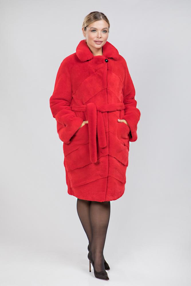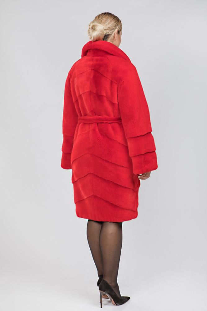 Полупальто из меха норки. Воротник модели английский, но при необходимости может трансформироваться в классический при помощи пуговицы. Крой изделия диагональная выкладка пластин. На талии и на рукавах модели имеются регулирующие утяжки. Длина изделия 100 см. Кармашки модели на магнитах. Меховой пояс прилагается. Высокое качества меха и сногсшибательный яркий цвет достойны щедрых комплиментов в свой адрес!