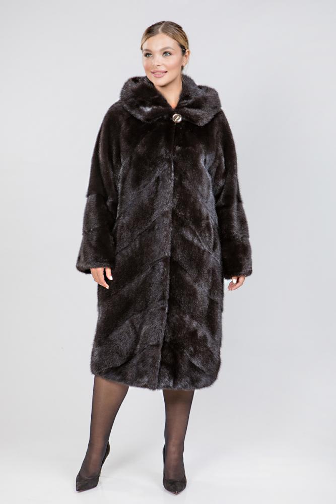Полупальто из меха норки с капюшоном. Крой изделия диагональная выкладка пластин. На талии и на рукавах модели имеются регулирующие утяжки. Низ изделия слегка заужен. Длина модели 115 см. Лаконичный дизайн шубки подойдет девушкам любой комплекции, а теплый и качественный мех будет согревать даже в суровые морозы!