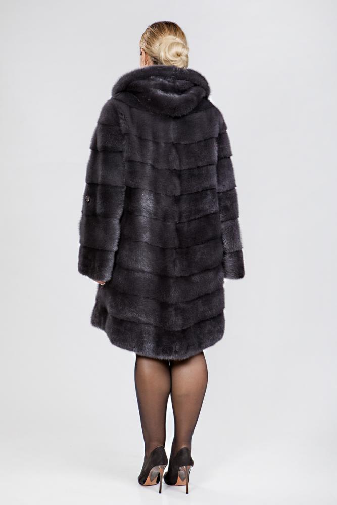 Полупальто из меха норки с капюшоном. Крой изделия-слегка диагональная выкладка пластин. Рукава и низ модели имеют регулирующие утяжки, благодаря которым шубка трансформируется в универсальную модель. При желании Вы можете распустить утяжки и получить классическую шубку! Длина изделия 100 см. Такая оригинальная и эксклюзивная модель пользуется популярностью у наших прекрасных покупательниц!