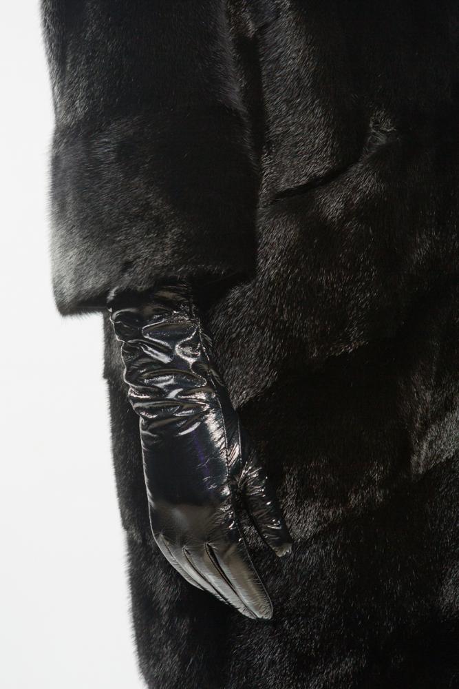 Полупальто из меха норки. Капюшон модели декорирован мехом чернобурой лисы. Крой изделия диагональная выкладка пластин. Внутри на талии, на рукавах и по низу модели имеются регулирующие утяжки. Длина изделия 100 см. Рукава шубки трансформируются в более укороченные. Удобное лекало мехового пальто обеспечит максимальный комфорт, а выразительный оттенок черного благородного меха гарантирует образу безупречную гармонию!