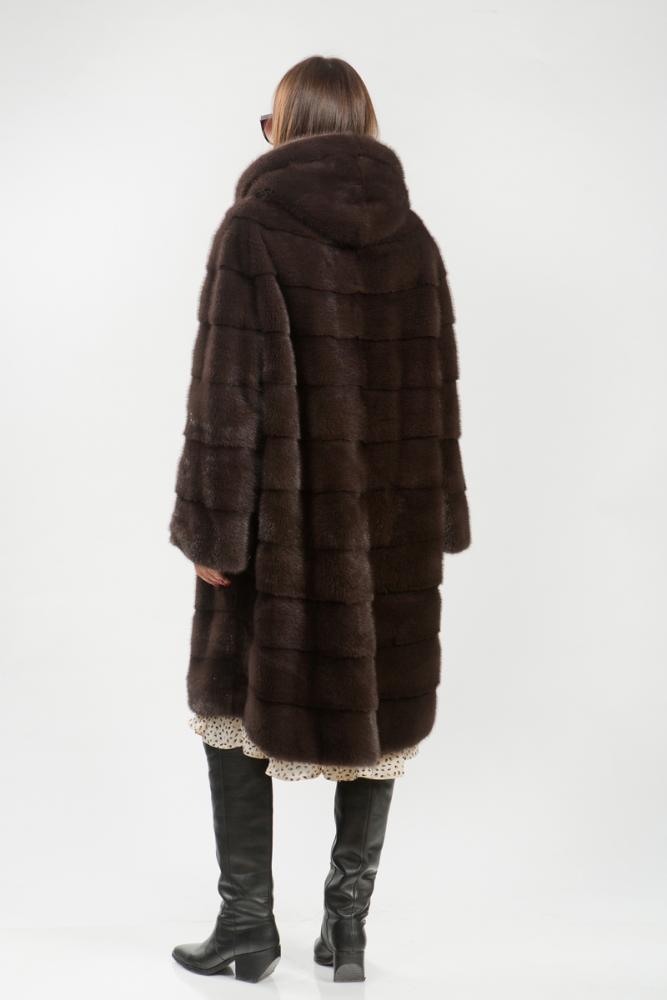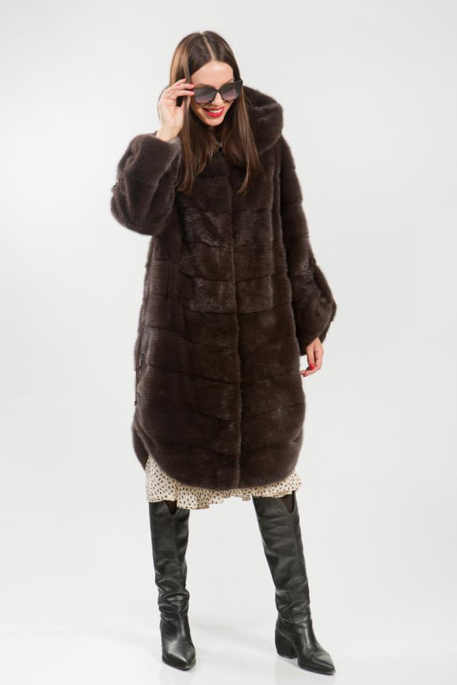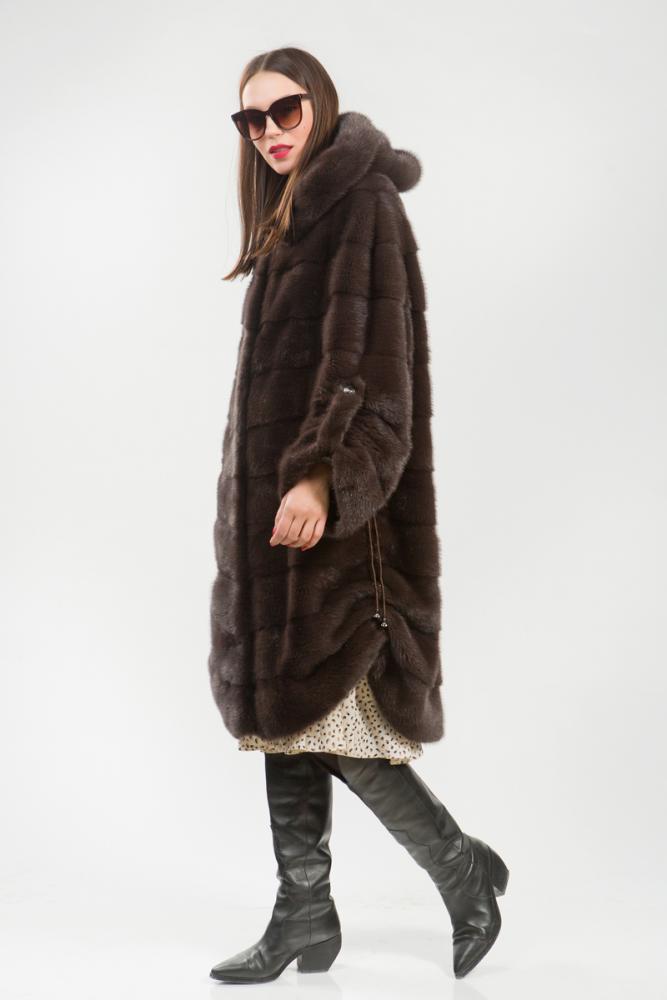 Полупальто из меха норки с капюшоном. Крой изделия-слегка диагональная выкладка пластин. Рукава и низ модели имеют регулирующие утяжки, благодаря которым шубка трансформируется в универсальную модель. При желании Вы можете распустить утяжки и получить классическую шубку! Длина изделия 110см. Такая оригинальная и эксклюзивная модель пользуется популярностью у наших прекрасных покупательниц!
