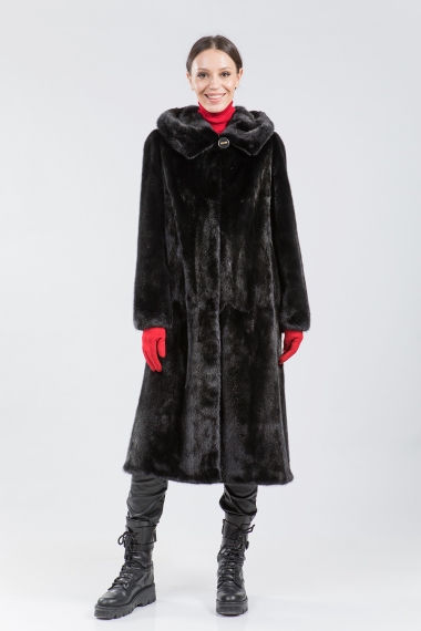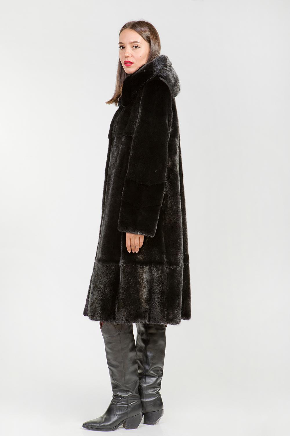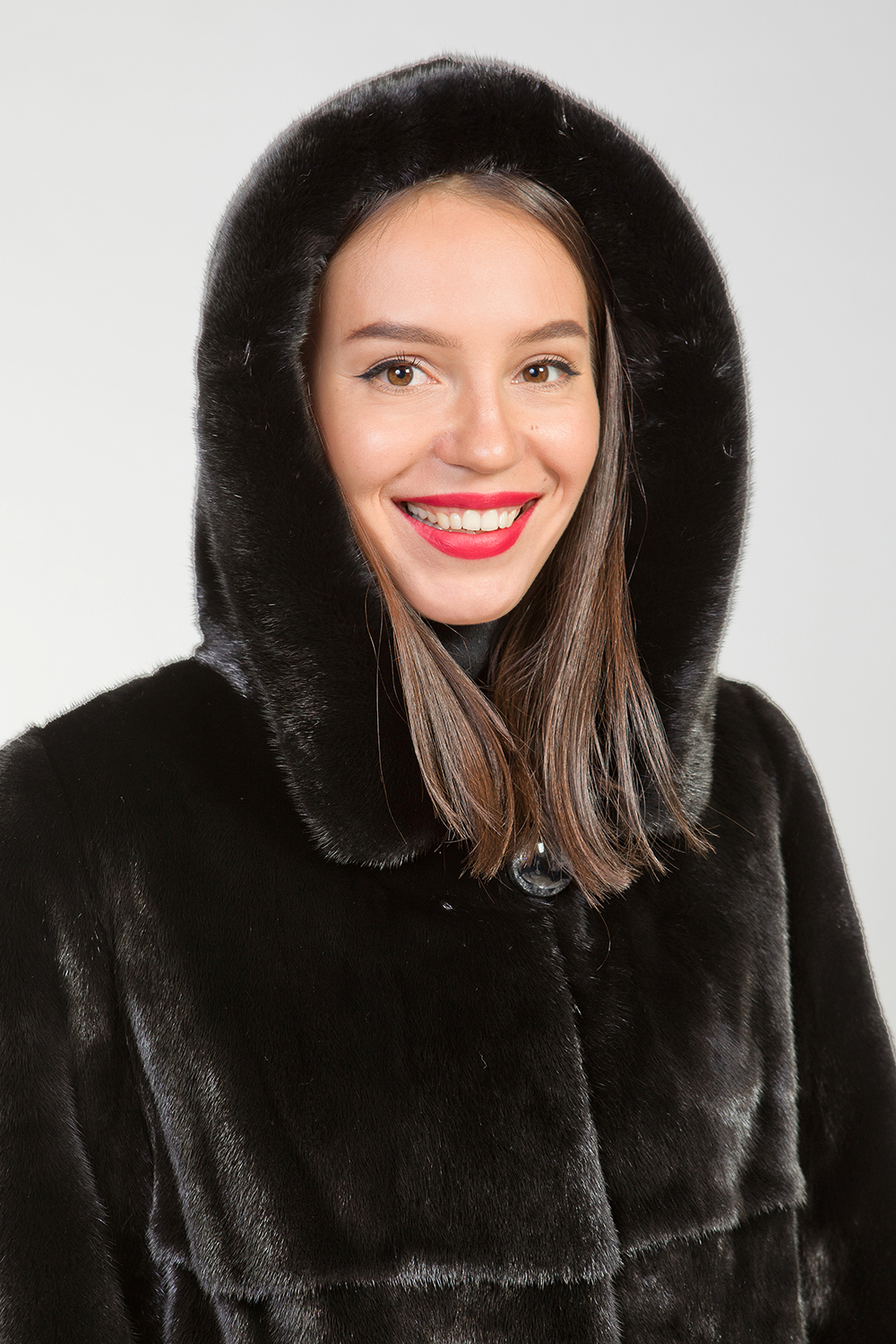 Полупальто из меха норки высокого качества с капюшоном. Крой изделия пластины с добавлением роспуска. Модель оснащена регулирующими утяжками на рукавах и в зоне талии. Длина изделия 110 см. Очаровательная шубка классического силуэта гармонично сочетается с различными аксессуарами. Такое меховое пальто гарантирует образу респектабельность и престижность!