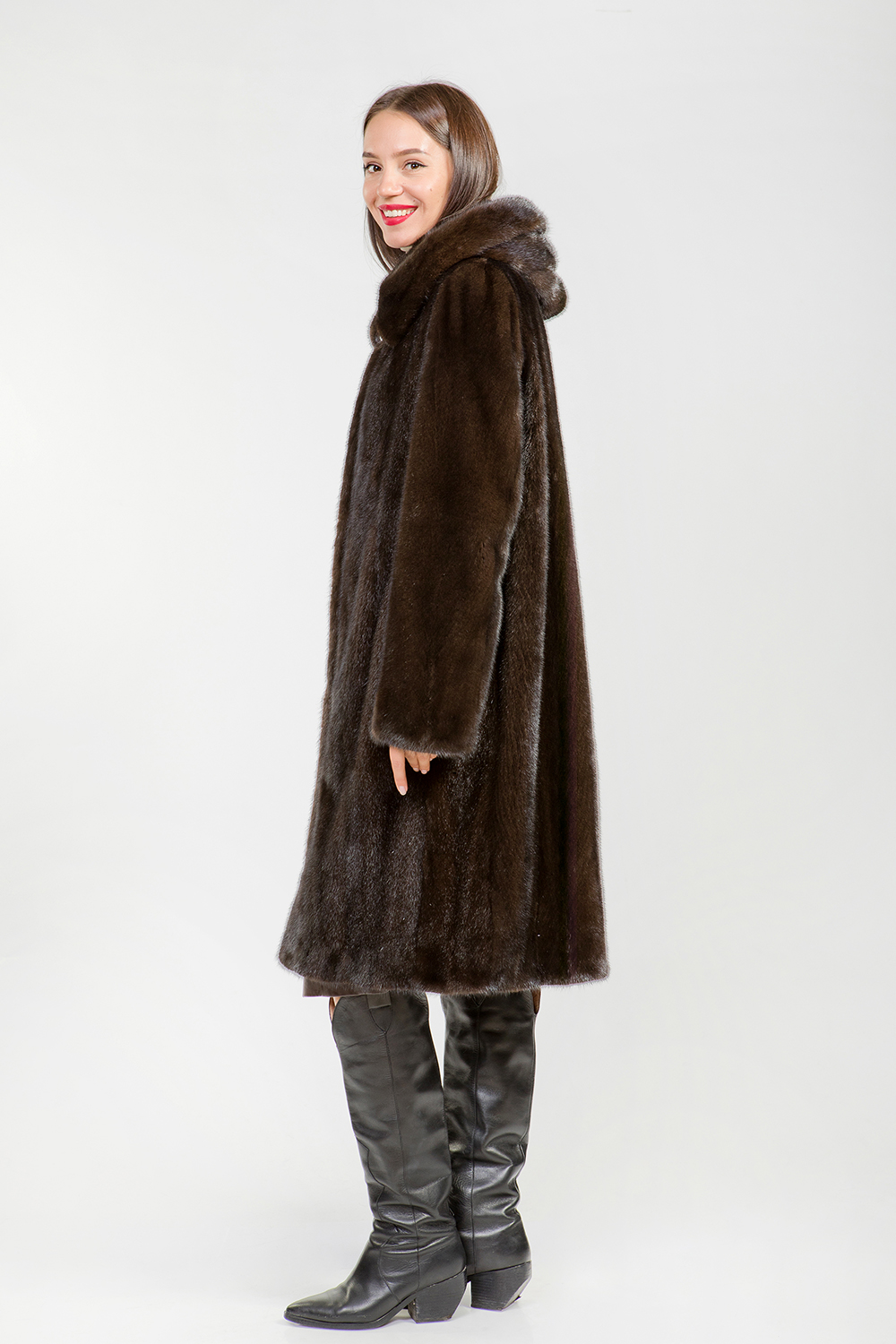 Полупальто из меха норки с капюшоном. Крой изделия роспуск. Модель оснащена регулирующими утяжками на рукавах и на талии. Длина изделия 110 см. Модель классического силуэта профессиональные стилисты считают безошибочным выбором! Шубка гармонично сочетается с разными аксессуарами и никогда не выходит из моды!