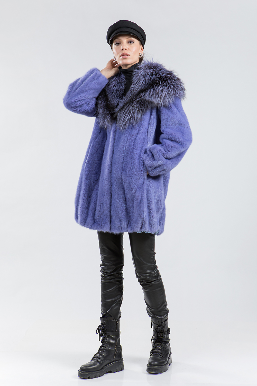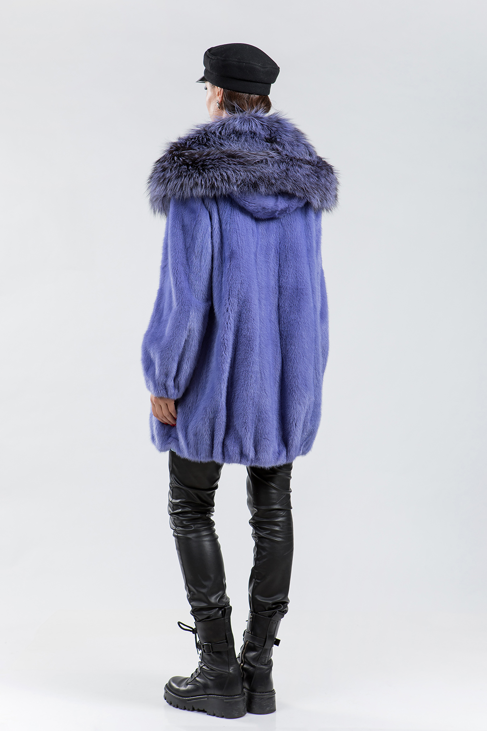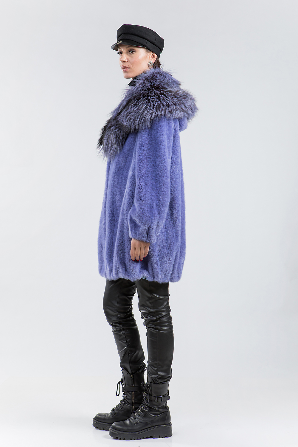 Полупальто из меха норки. Капюшон модели декорирован мехом шикарной тонированной лисы. Крой изделия роспуск с добавлением пластин. Особый шик модели придает чуть присобранный низ. Изделие оснащено регулирующей утяжкой на талии, которая позволяет скорректировать шубку по фигуре. Длина модели 90 см. Шубка гарантирует луку должную респектабельность!