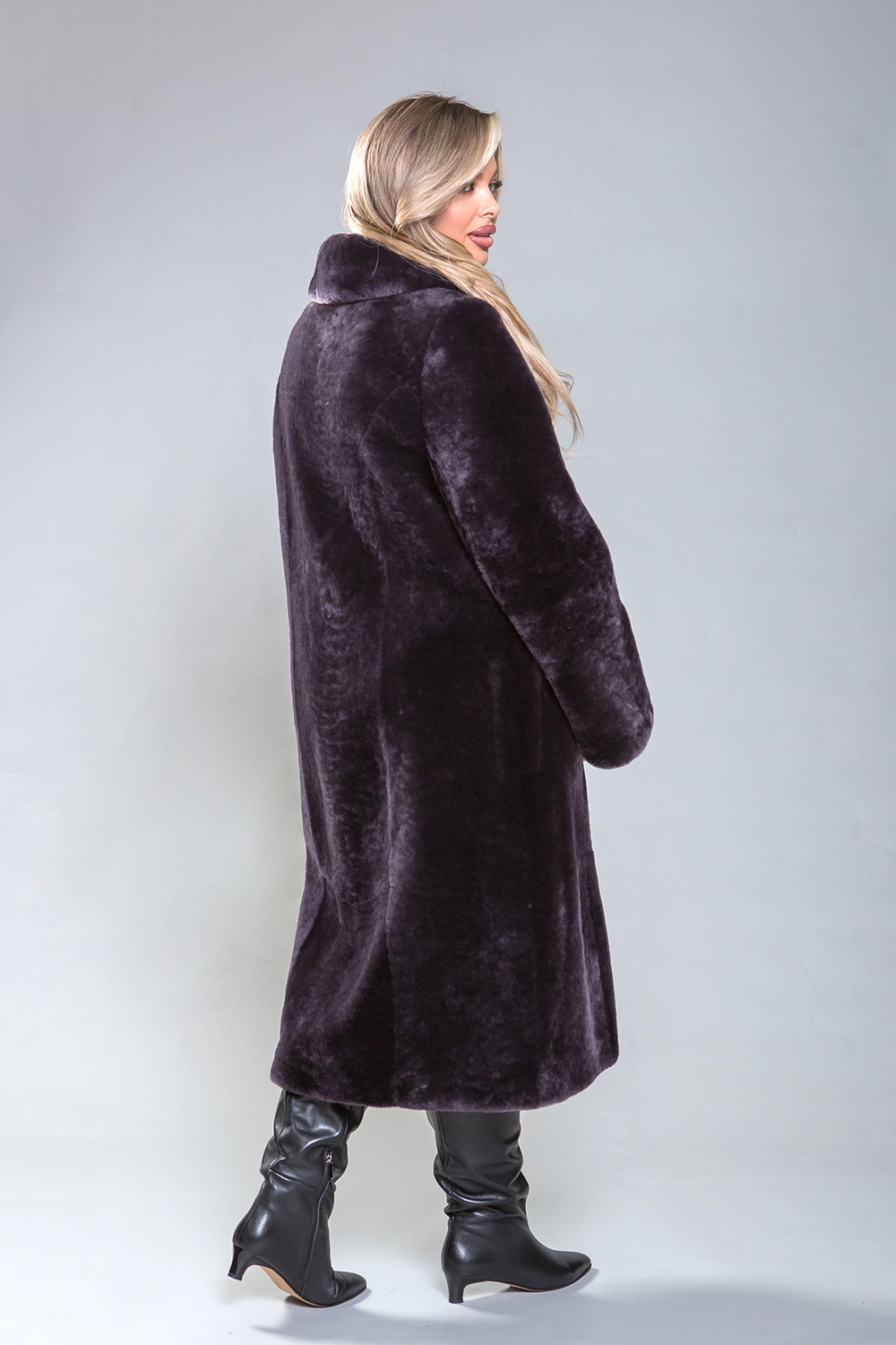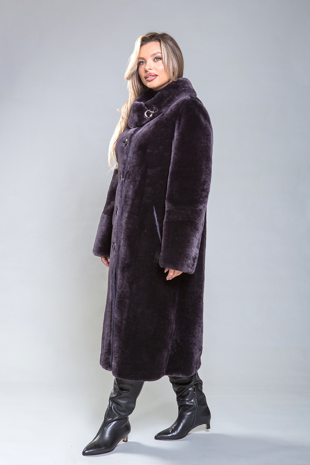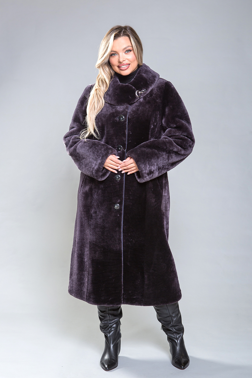 Полупальто из высококачественной овчины – это модель с воротником, который фиксируется декоративной клипсой. Шубка застегивается на пуговицы и имеет длину 115 см. Карманы и борта изготовлены из натуральной замши, что делает это изделие универсальным решением. Профессиональные стилисты подчеркивают, что классический силуэт шубы идеально подходит для любой фигуры, добавляя образу элегантность и утонченность.