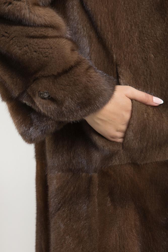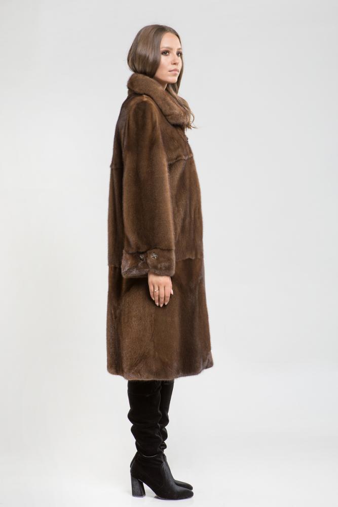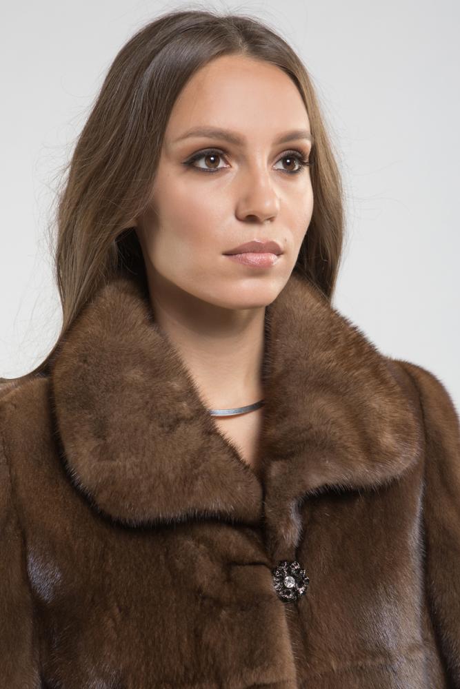 Полупальто из норки с воротником — это воплощение элегантности и стиля. Модель выполнена из пластин с добавлением роспуска, что придаёт ей неповторимый шарм.