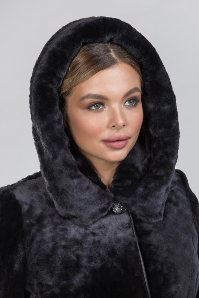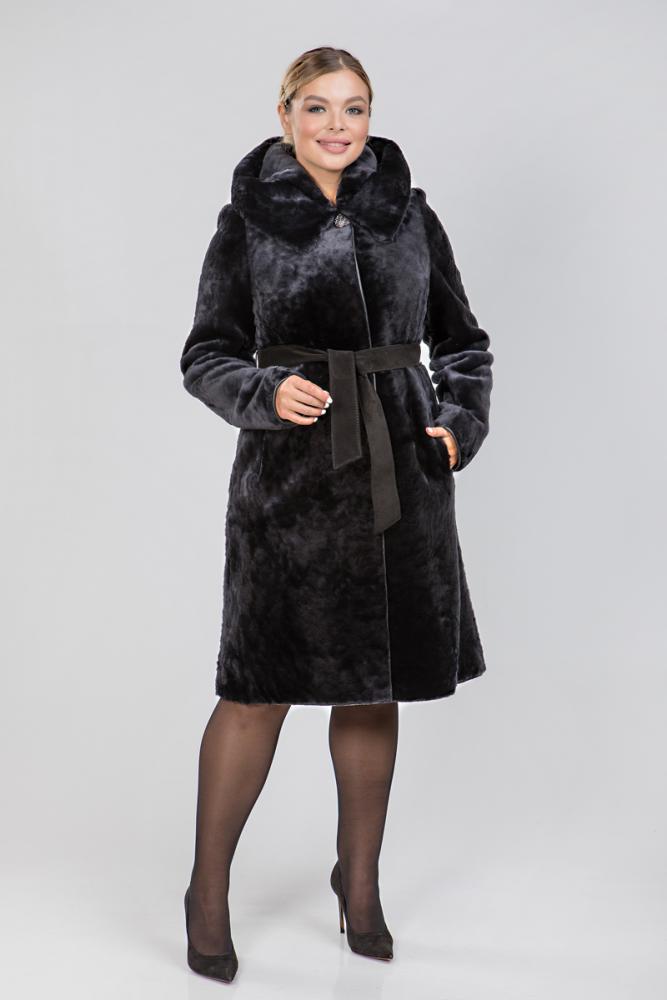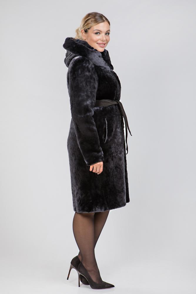 Полупальто из меха овчины с капюшоном. Модель застегивается на клипсы. Длина изделия 100 см. Пояс из натуральной замши в комплекте. Консервативная модель с приталенным силуэтом, зрительно подчеркивает стройную фигуру девушек!