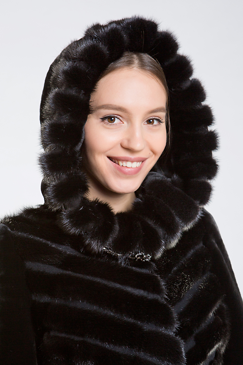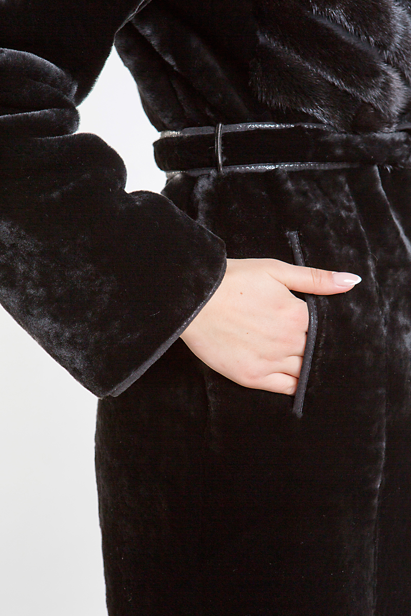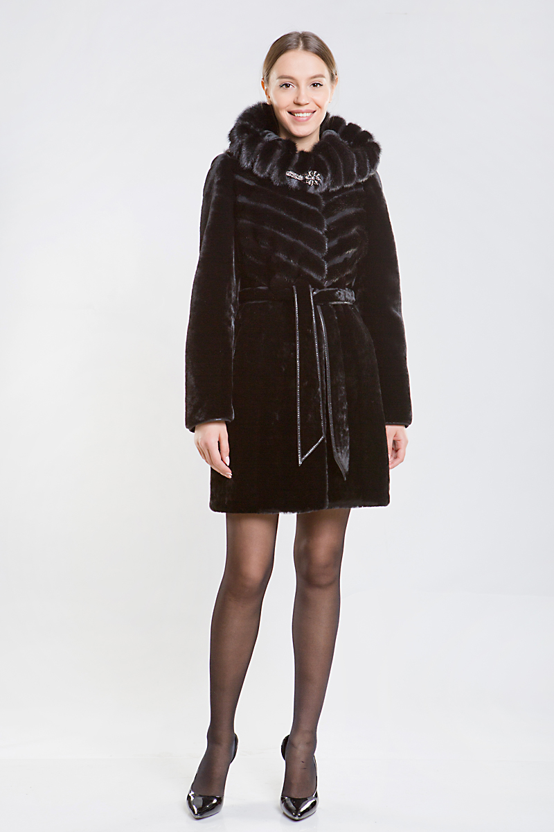 Полупальто из меха овчины. Капюшон изделия и верх модели декорирован мехом норки. Пояс в комплекте. Такая консервативная и элегантная модель для ценителей строгого классического стиля.