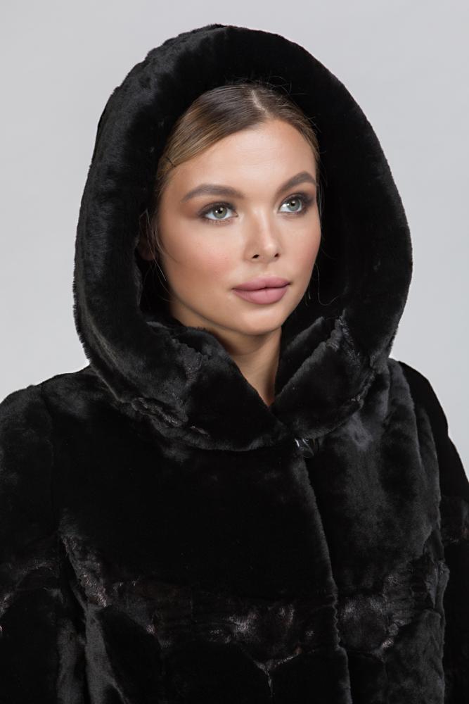 Курточка из меха овчины. Капюшон модели дополнен мехом норки. Рукава модели могут подворачиваться, образуя манжеты. Курточка декорирована вставками из меха норки. Длина изделия 80 см. С такой шубкой одинаково хорошо будут смотреться как юбки любой длины, так и брюки от свободных до облегающих!