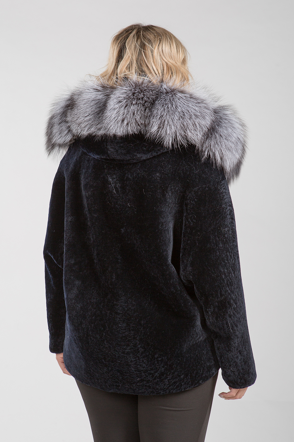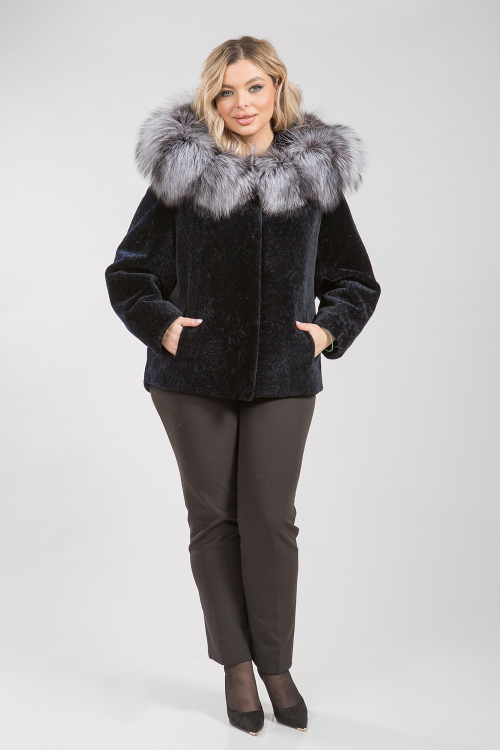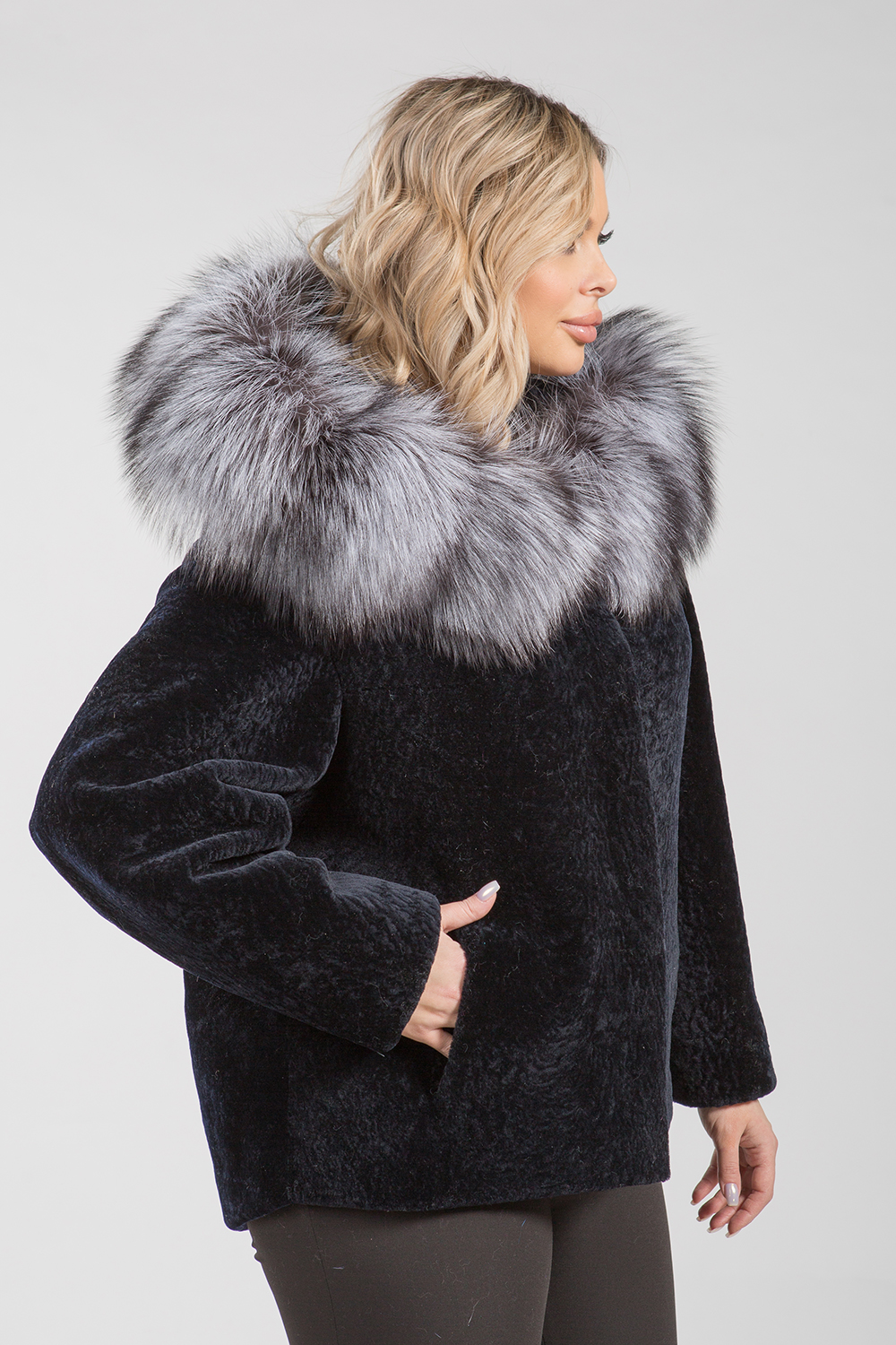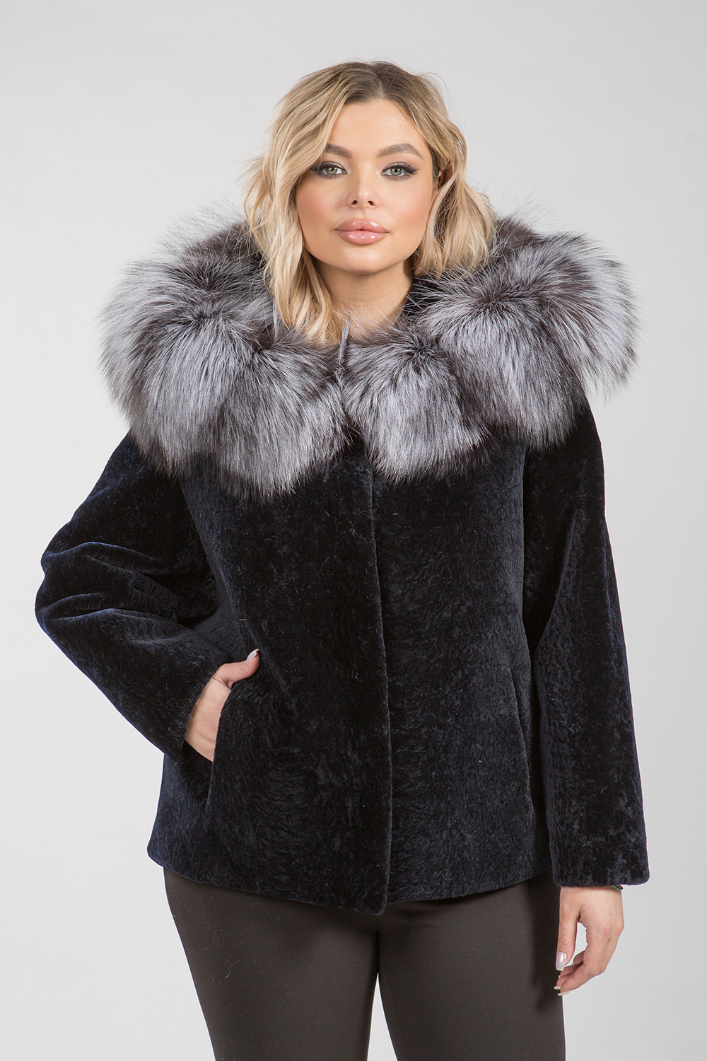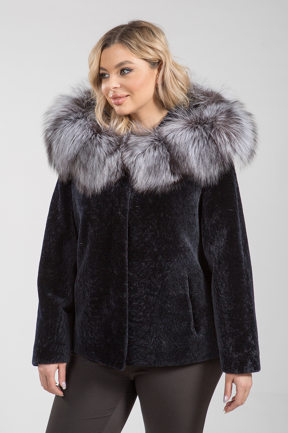 Курточка из меха овчины (астрагана). Капюшон модели декорирован мехом шикарной лисы. Крой изделия пластины. Фасон рукава свободный. Длина модели 75 см. Изделие застегивается на клипсы. Курточка легкая и теплая. Благородный черный цвет астрагана и великолепие меха лисы представляют неограниченные возможности для любительниц экспериментов, изменений стиля и имиджа!