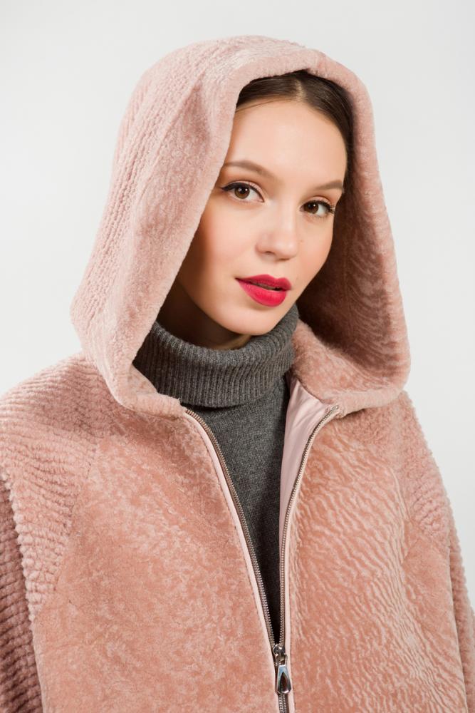Курточка из меха овчины (астраган, керли) с капюшоном. Рукава изделия свободного кроя и имеют манжеты. Модель застегивается на молнию. Кармашки курточки декорированы натуральной кожей. Длина изделия 60 см. Такая меховая курточка из астрагана и керли является оптимальным вариантом для повседневного образа. Мех обеспечивает надежную теплозащиту, а благодаря небольшому весу шубка достаточно легкая и комфортная!