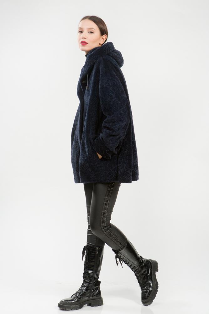 Куртка из меха овчины (астрагана) с капюшоном. Крой изделия пластины. Внутри модели есть регулирующая утяжка, а низ рукавов фиксируется кнопками. По бокам изделия есть элегантные разрезы. Длина модели 80 см. Такая легкая курточка из астрагана является оптимальным вариантом для повседневного образа. Мех обеспечивает надежную теплозащиту и не создает дискомфорта благодаря небольшому весу!