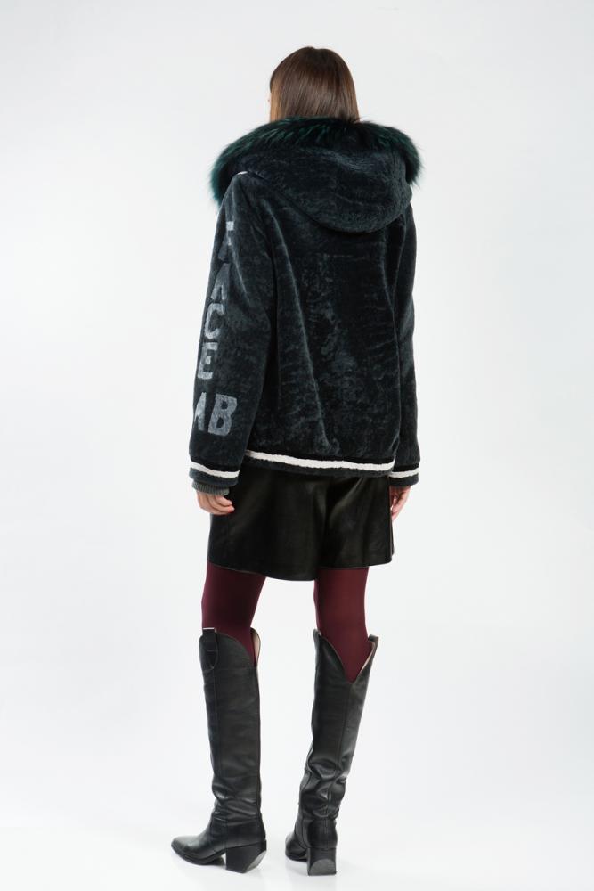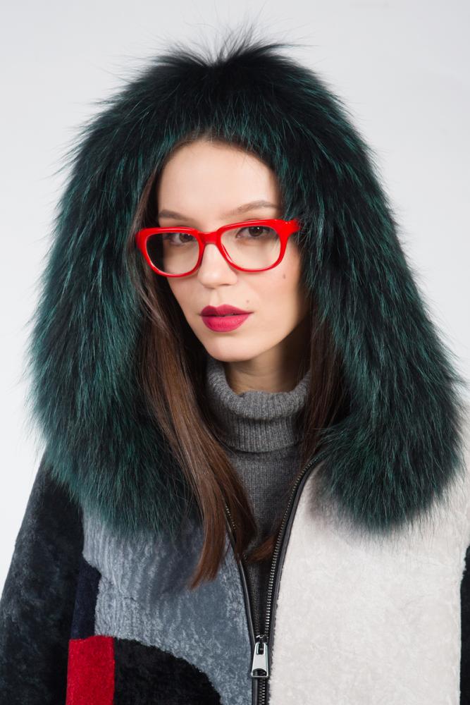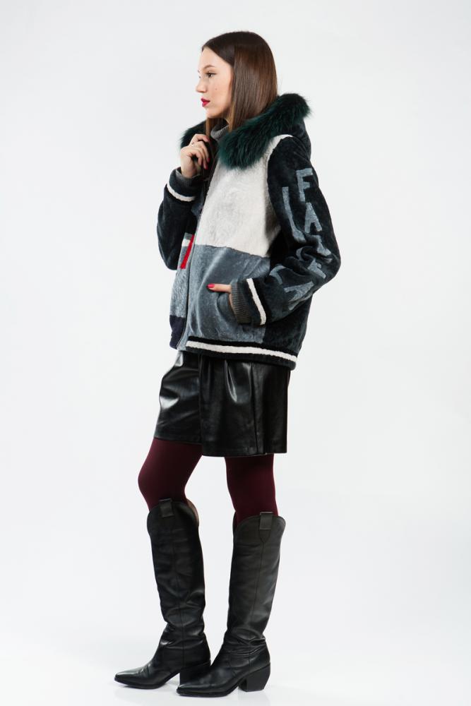 Куртка из меха овчины (астрагана). Капюшон модели дополнен мехом енота. Изделие декорирована разноцветными вставками и застегивается на молнию. Благодаря оригинальному дизайну и длине, такую курточку можно носить не только с брюками и джинсами, а и с юбочками и даже с утепленными шортами! Создайте для себя новый, комфортный и модный зимний образ!