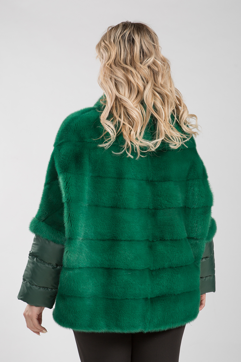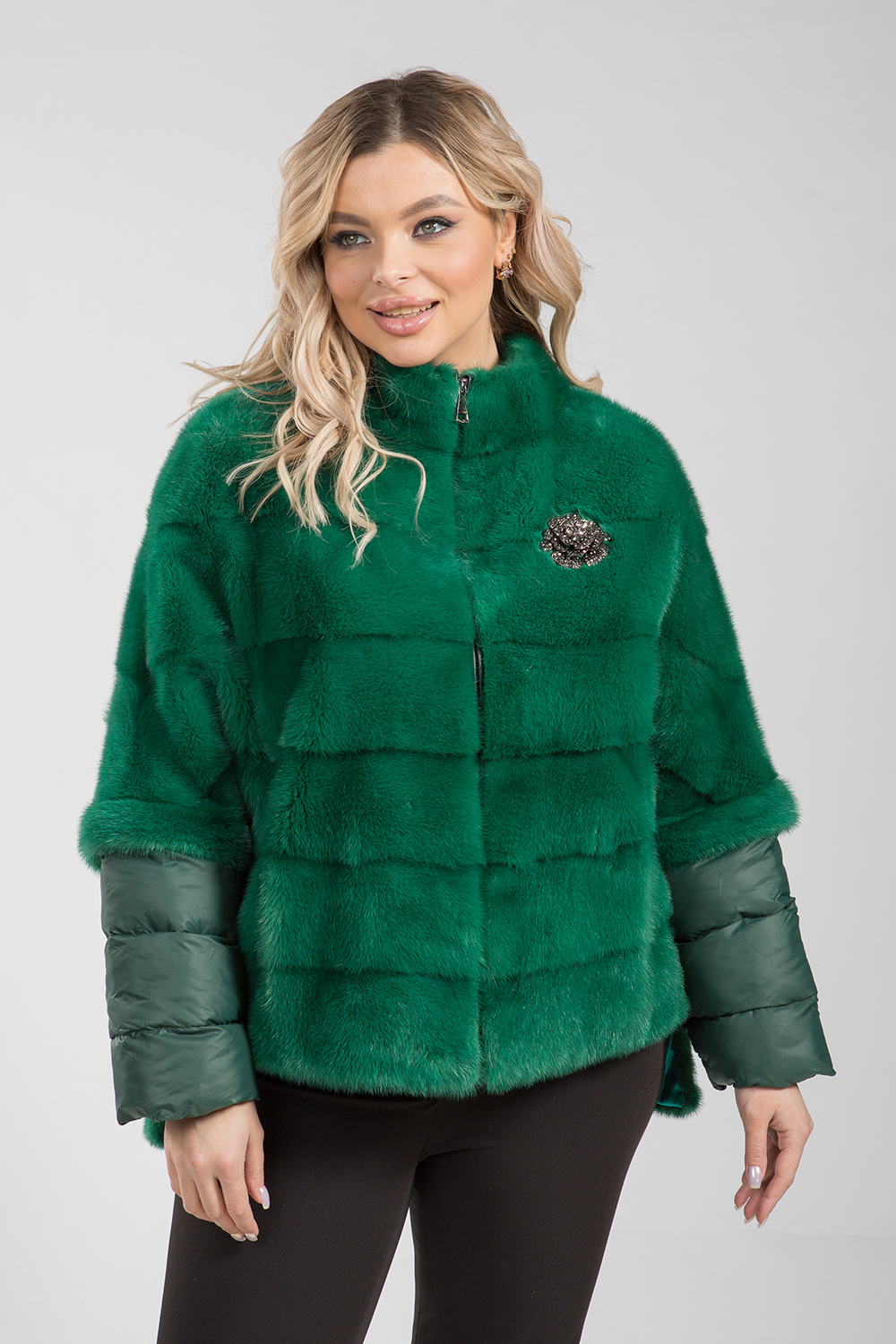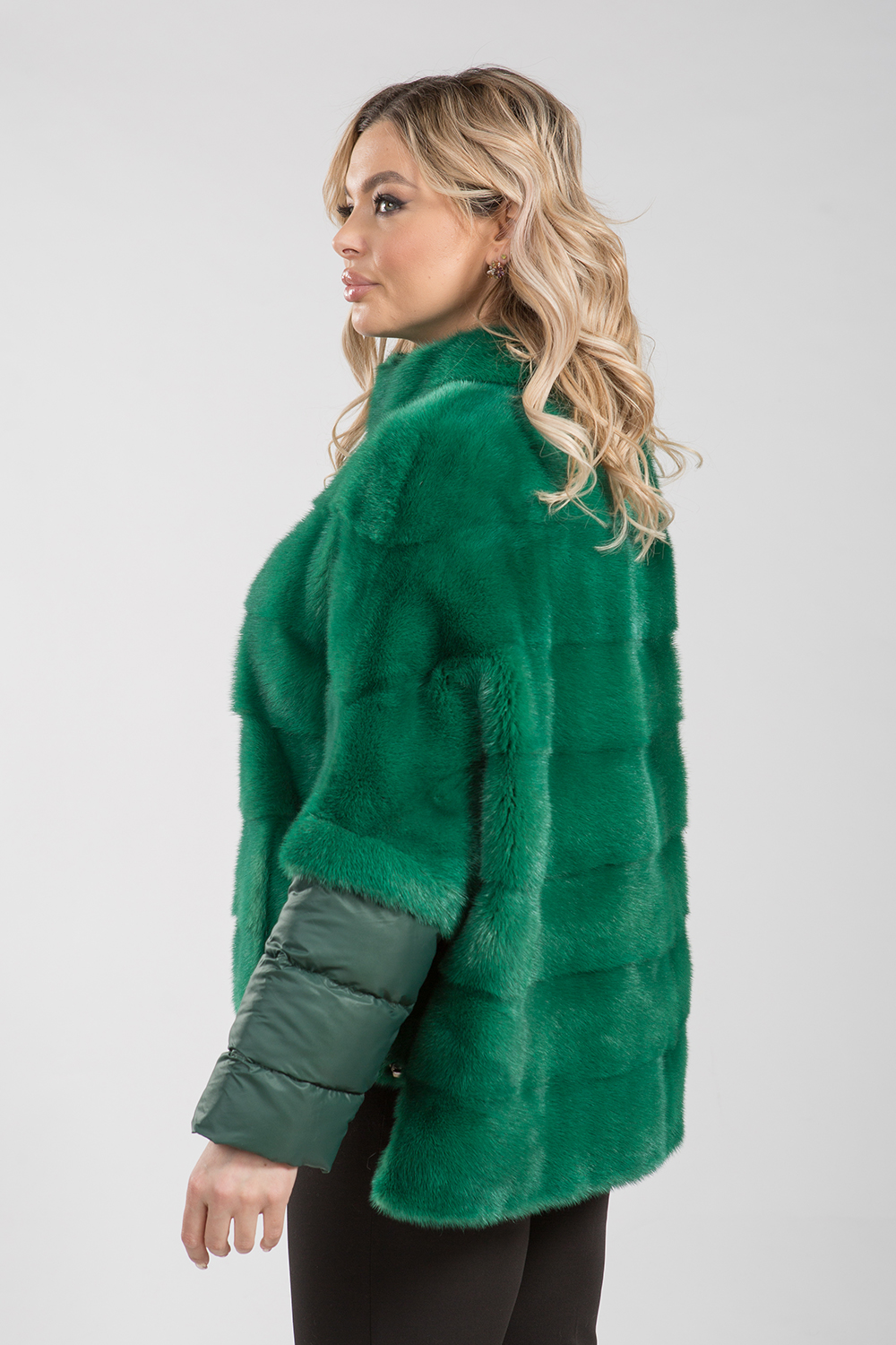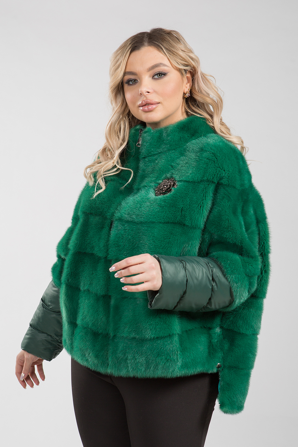 Курточка-жилет из меха норки. Крой изделия поперечная выкладка пластин. Рукава модели трансформируются в более укороченные. Лаконичный дизайн воротника напоминает стиль Шанель. Низ и рукава изделия имеют регулирующие утяжки. Застегивается курточка на молнию. Такая изящная курточка хорошо сидит на любой фигуре и гармонично сочетается с различными аксессуарами. Универсальный вариант в прохладную погоду!