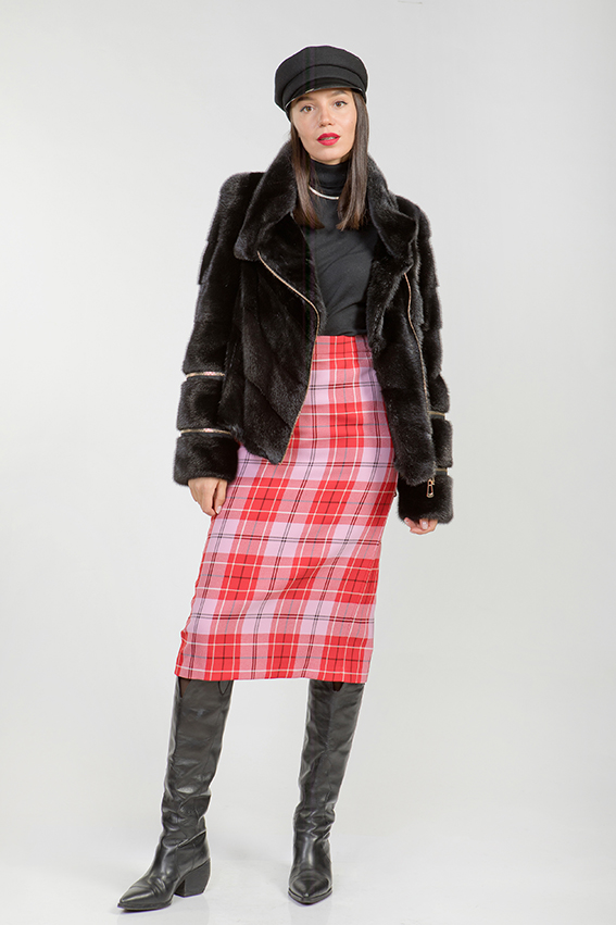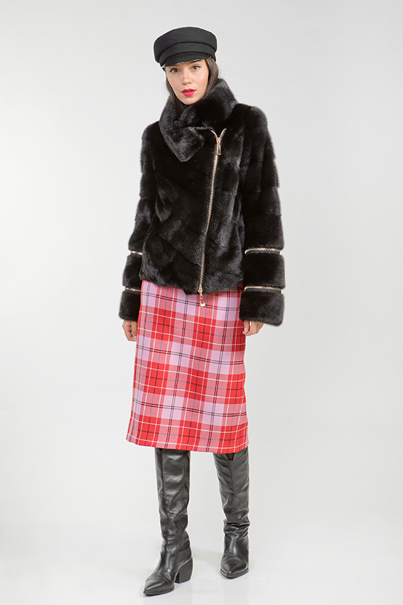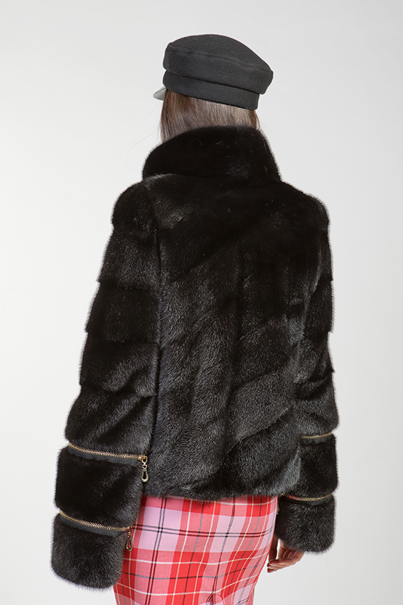 Куртка из меха норки с диагональной выкладкой пластин станет вашим надежным спутником в холодное время года. Элегантный воротник-стойка придаст вашему образу утонченности, а рукава можно отрегулировать с помощью молний, что позволяет создавать уникальные и стильные наряды. Длина изделия составляет 60 см, что идеально подходит для тех, кто любит экспериментировать с модными решениями и часто обновляет свой гардероб!