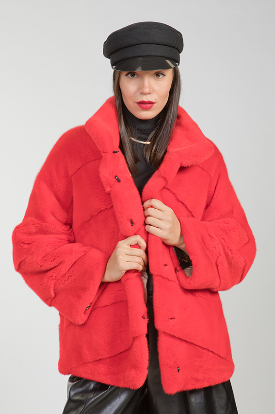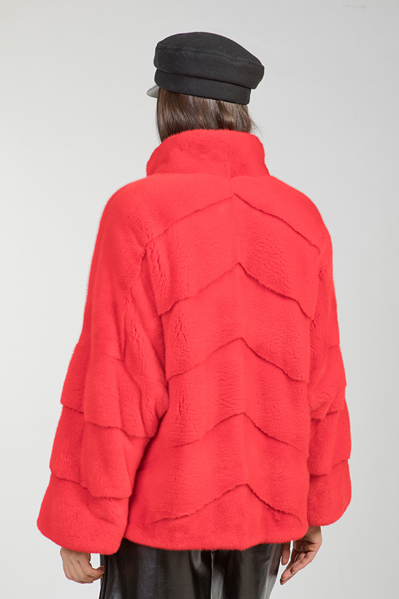 Куртка из меха норки. Воротник стойка. Крой изделия диагональная выкладка пластин. На рукавах и по низу модели имеются регулирующие утяжки. Длина изделия 80 см. Такая курточка сногсшибательного пурпурного цвета позволит стать яркой личностью на фоне белоснежной зимы!