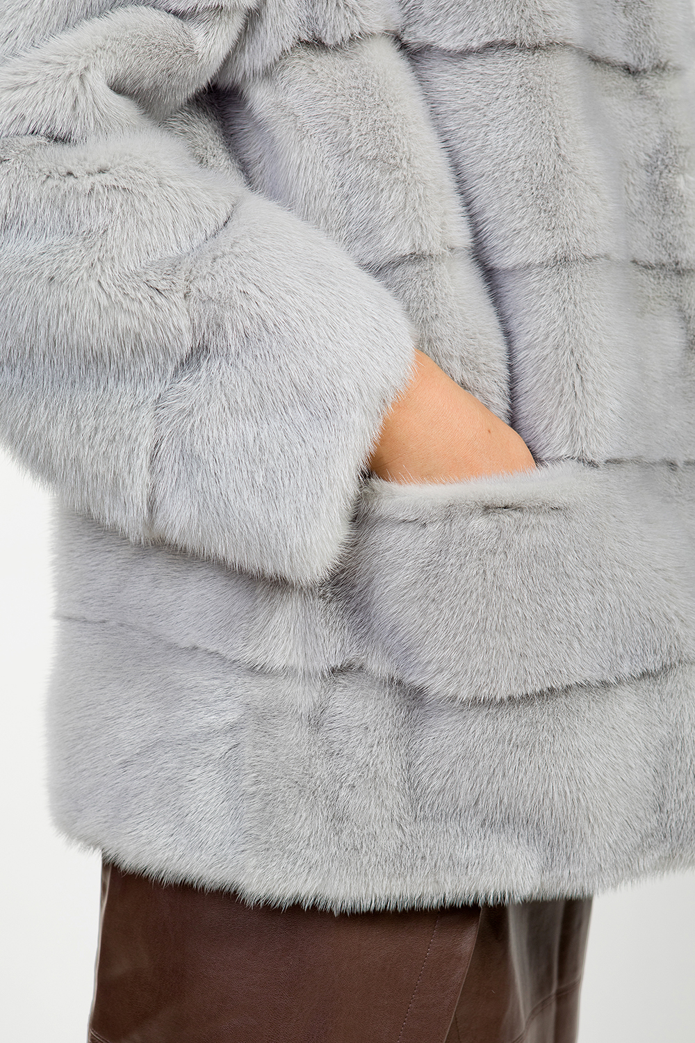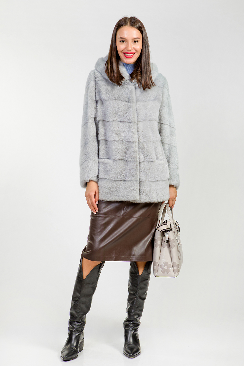 Куртка из меха норки с капюшоном. Крой изделия поперечная выкладка пластин. Модель оснащена регулирующими утяжками на рукавах и на талии. Карманы куртки на магнитах. Длина изделия 80 см. Курточка имеет универсальный фасон и подходит для любого типа фигуры.