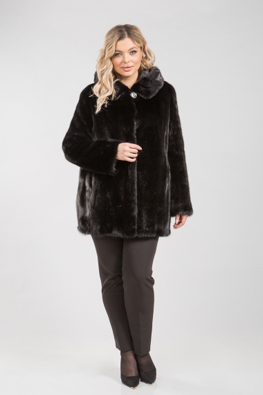 Удлинённая куртка из норки с капюшоном, выполненная в технике роспуска. Модель оснащена регулируемыми утяжками на рукавах, по низу изделия и в области талии, что позволяет создавать идеальный силуэт. Длина куртки составляет 90 см.