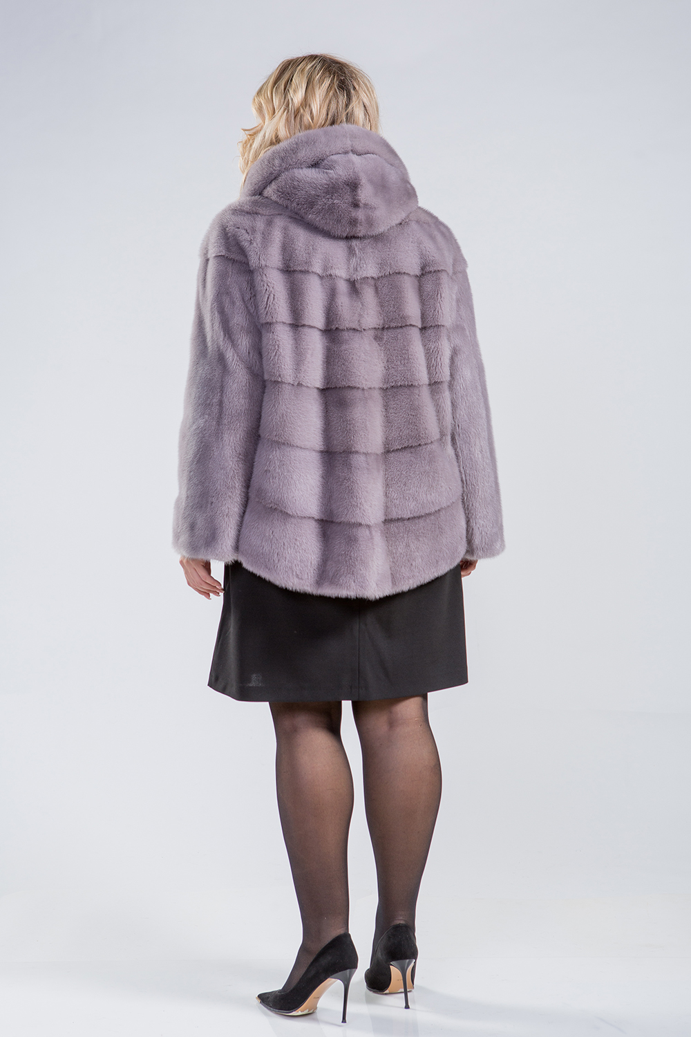 Курточка из меха норки с капюшоном. Крой изделия-поперечная выкладка пластин. Рукава модели сшиты в роспуск и имеют регулирующие утяжки. Длина изделия 80 см. С такой курточкой одинаково хорошо будут смотреться как юбки и платья любой длины, так и брюки от свободных до облегающих! Натуральный мех курточки не боится атмосферных осадков, сохраняет тепло и защищает от ветра!