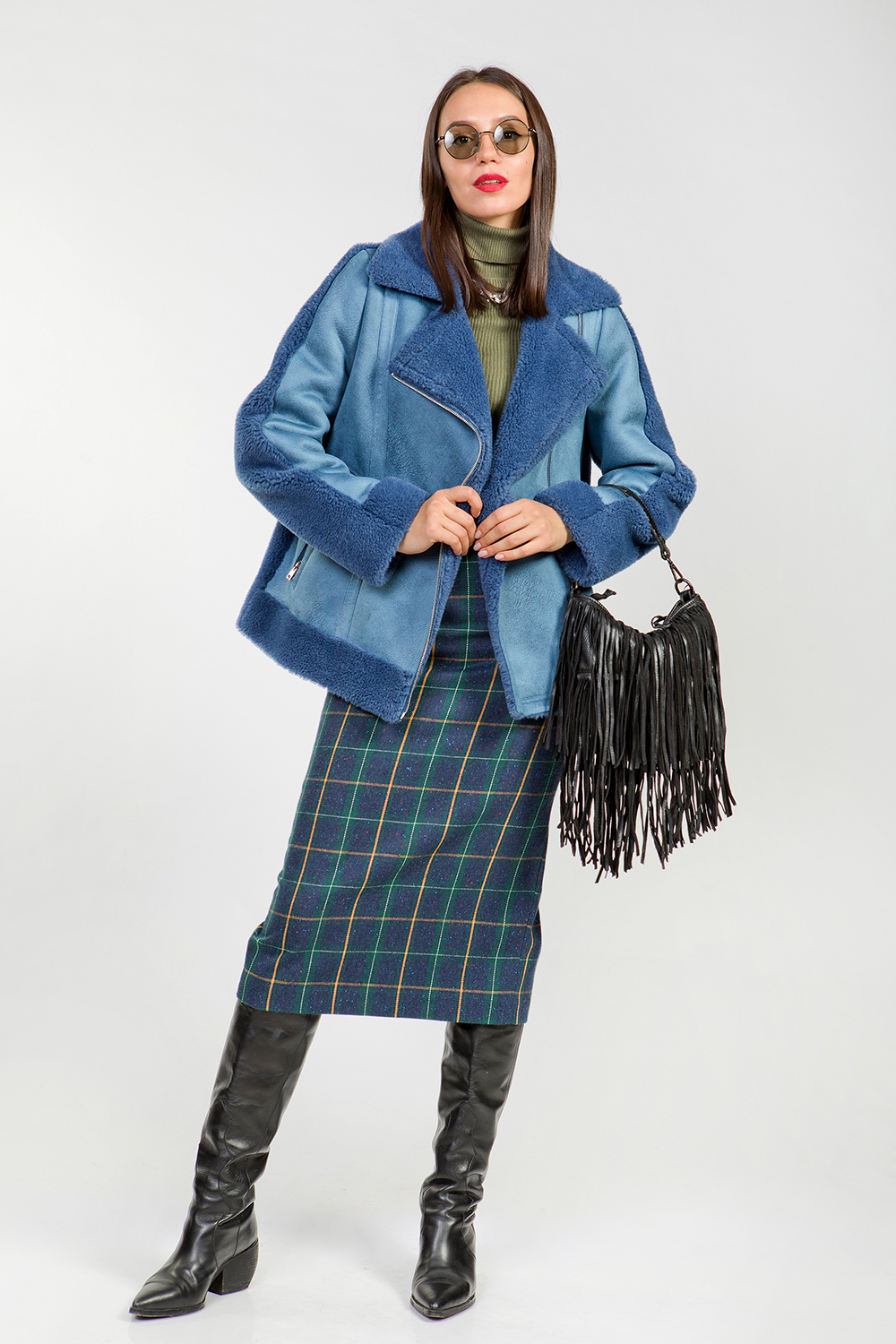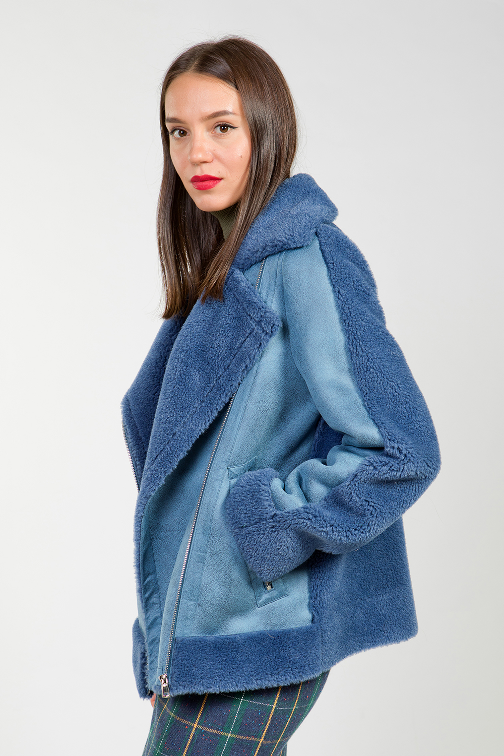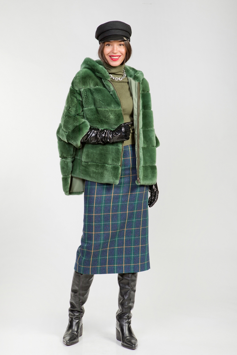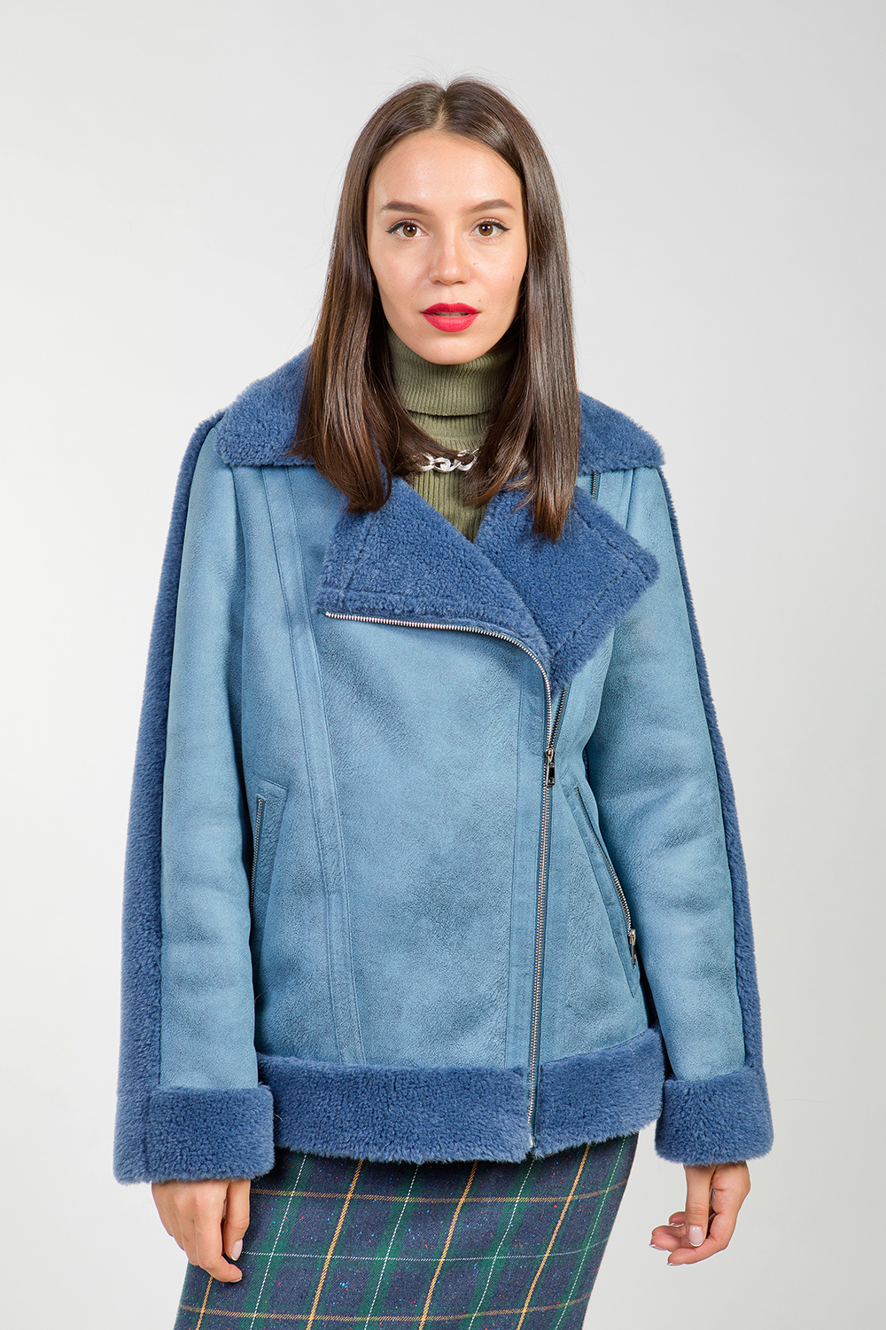 Курточка из овечьей шерсти. Английский воротник модели трансформируется в классический. Длина изделия 68 см. Карманы и сама модель застегиваются на молнии. Миниатюрная курточка смотрится оригинально и предназначена для создания стильных и эффектных образов.